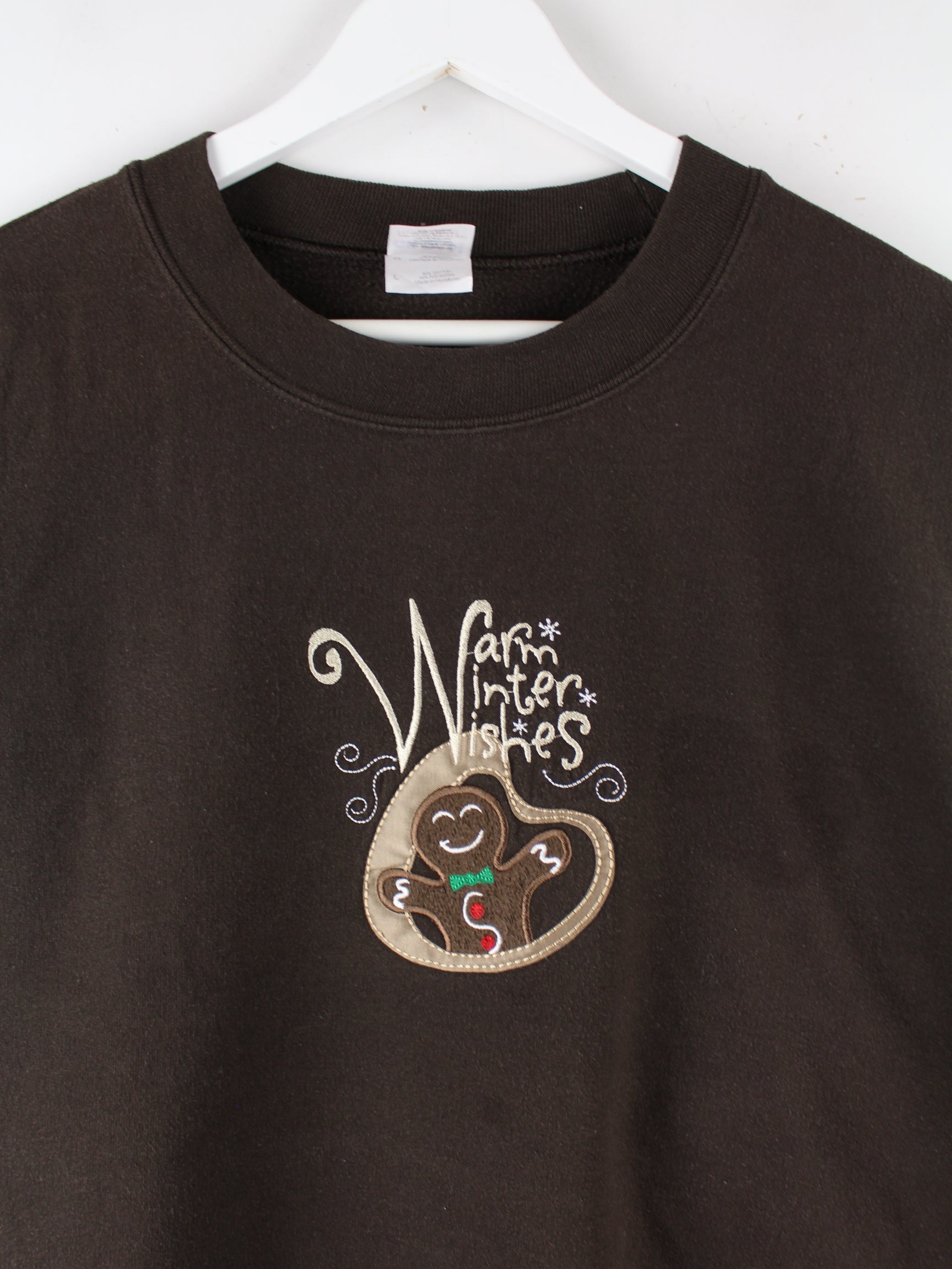 Gildan 90s Vintage Embroidered Christmas Sweater Braun L