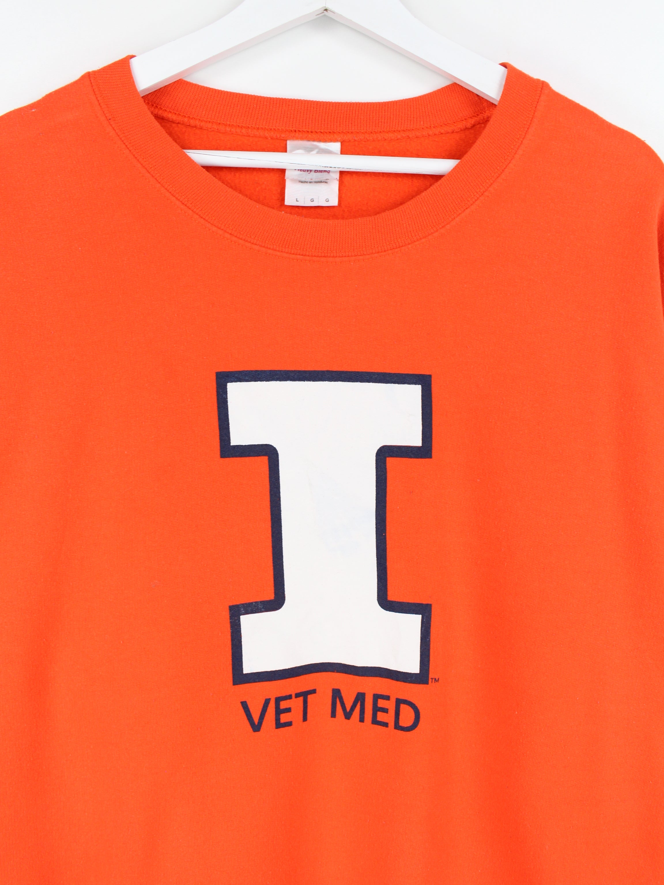 Orangefarbener Sweater mit großem Vet Med Print.