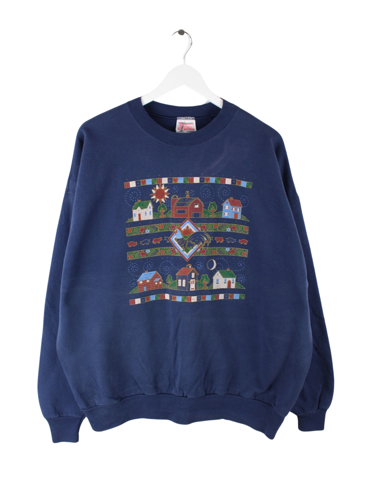 Hanes 90s Vintage Christmas Print Sweater Blau XL
