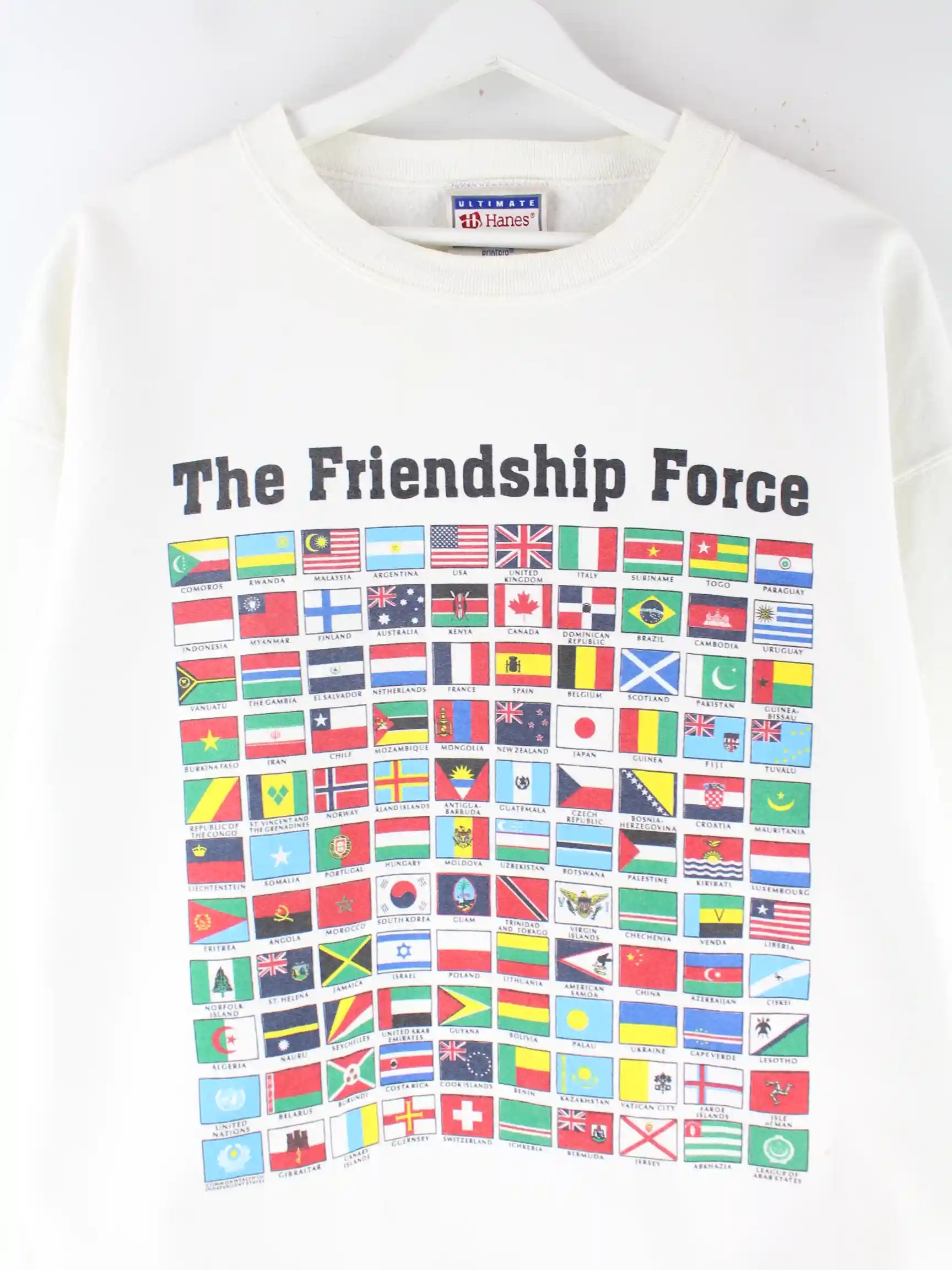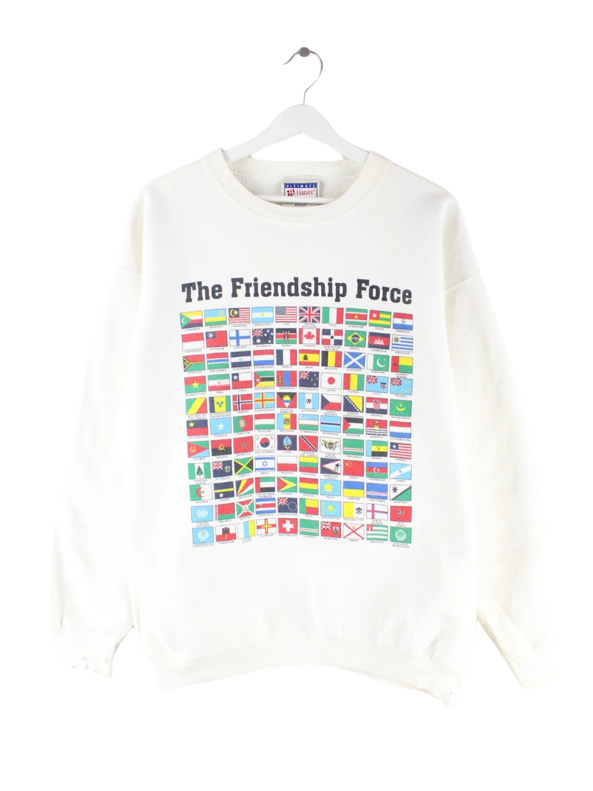 Hanes 90s Vintage Friendship Force Print Sweater Weiß L