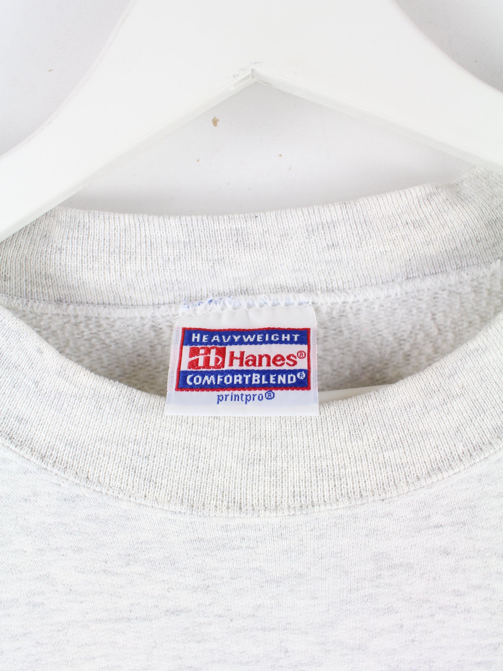 Sweater aus dem Hause Hanes in Größe XL aus den 90'ern. Er ist aus einer Baumwollmischung und in Grau im Angebot. Mit tollem Eagles Print.