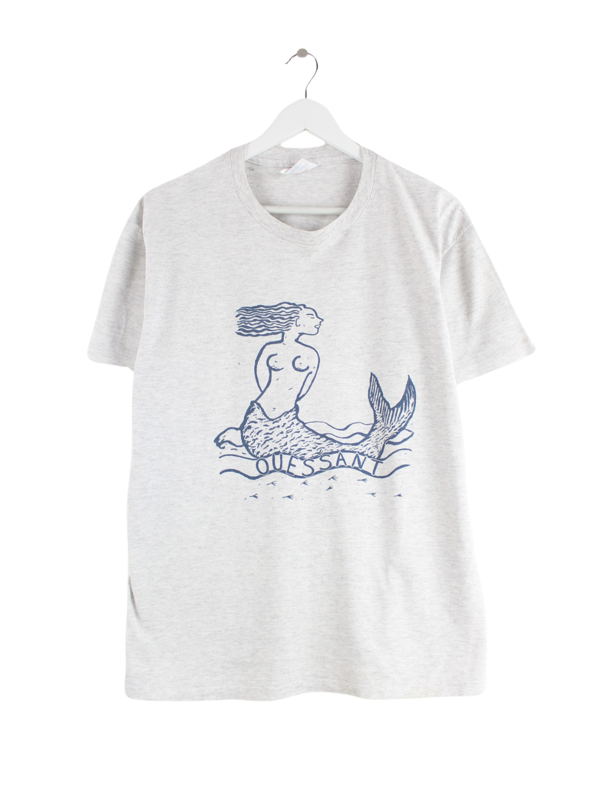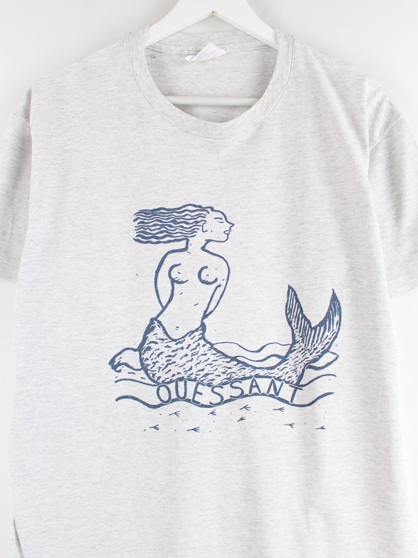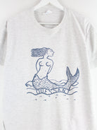Hanes 90s Vintage Mermaid Print Single Stitch T-Shirt Grau L