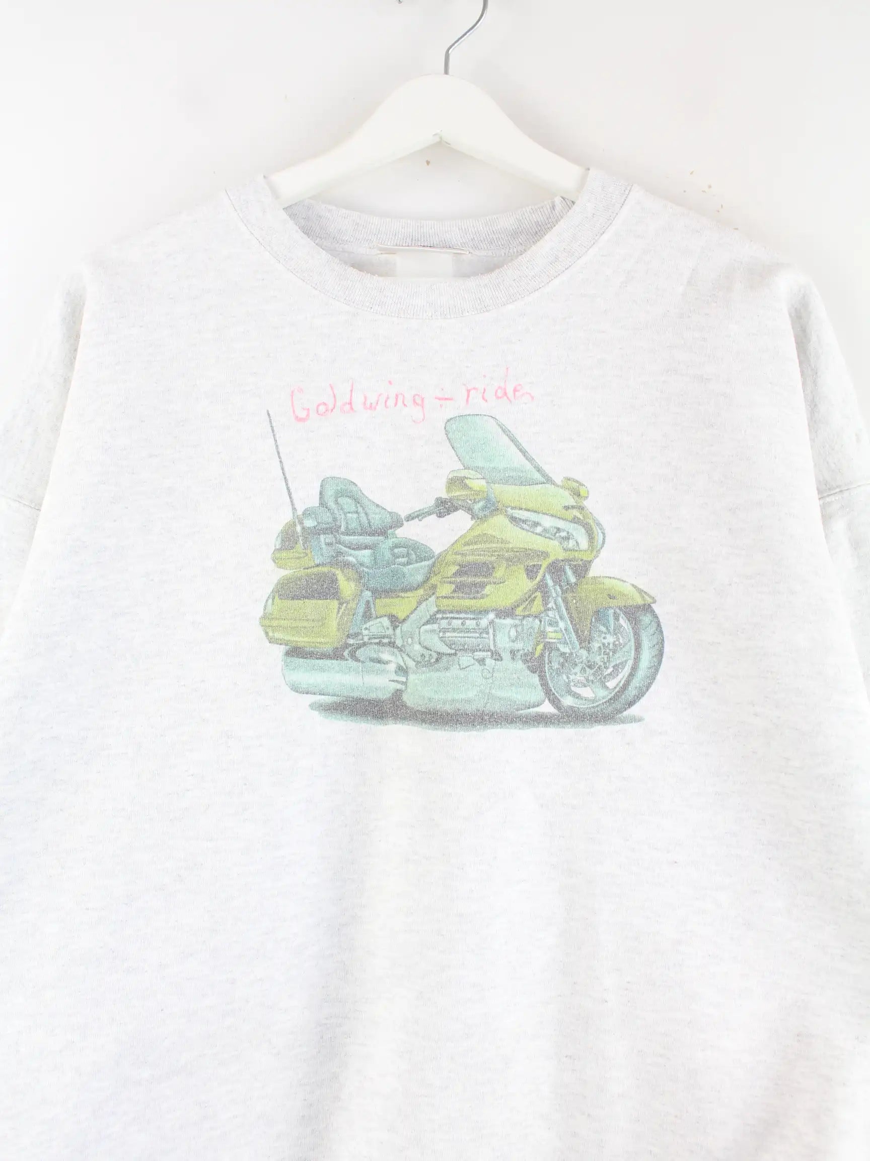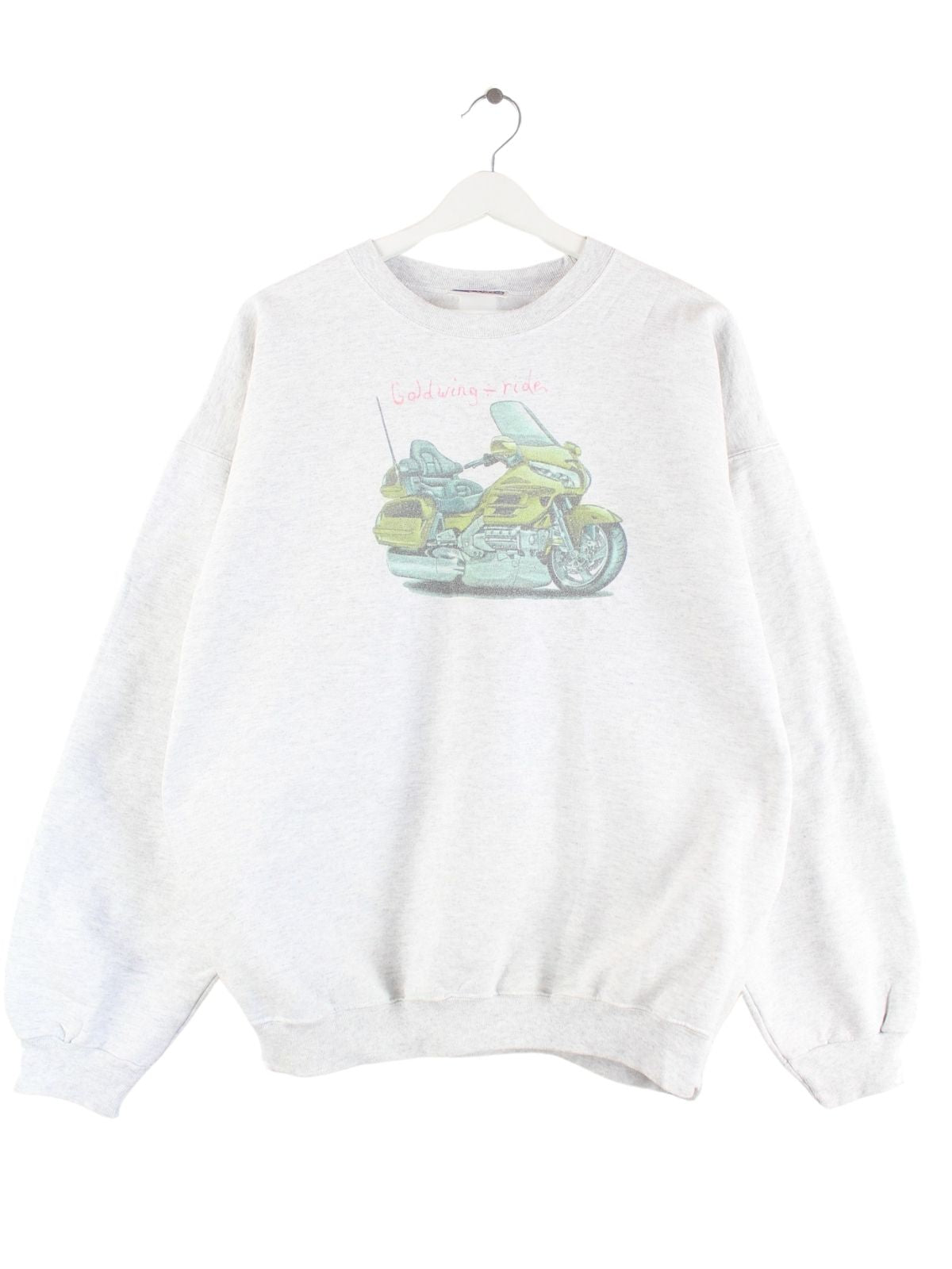 Hanes 90s Vintage Motorcycle Print Heavy Sweater Grau L