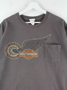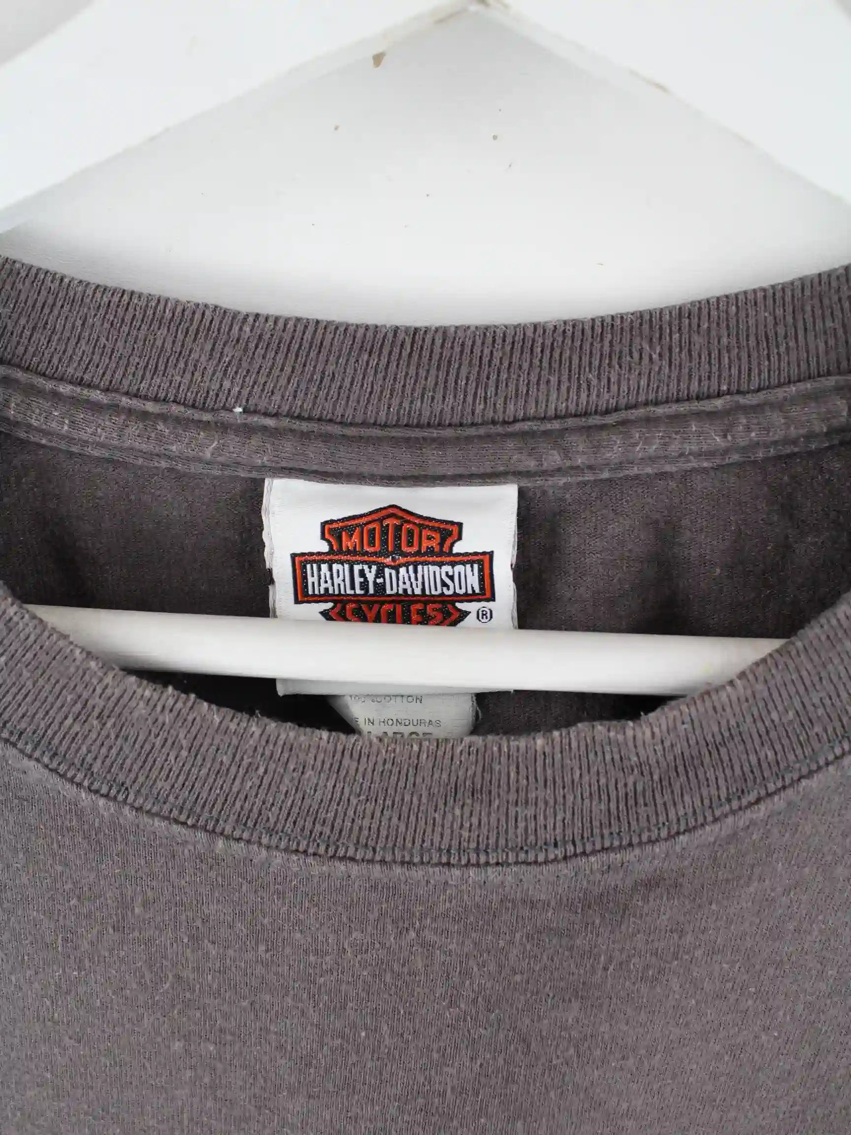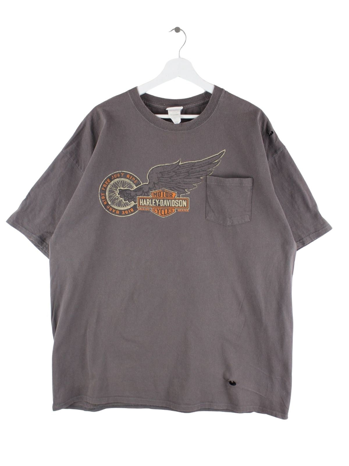 Graues T-Shirt aus dem Hause Harley Davidson in Größe XL. Es ist aus Baumwolle produziert. Den Zustand würden wir als 'In Ordnung' bezeichnen (vergl. Bilder).Mit schickem Peterson's Print.