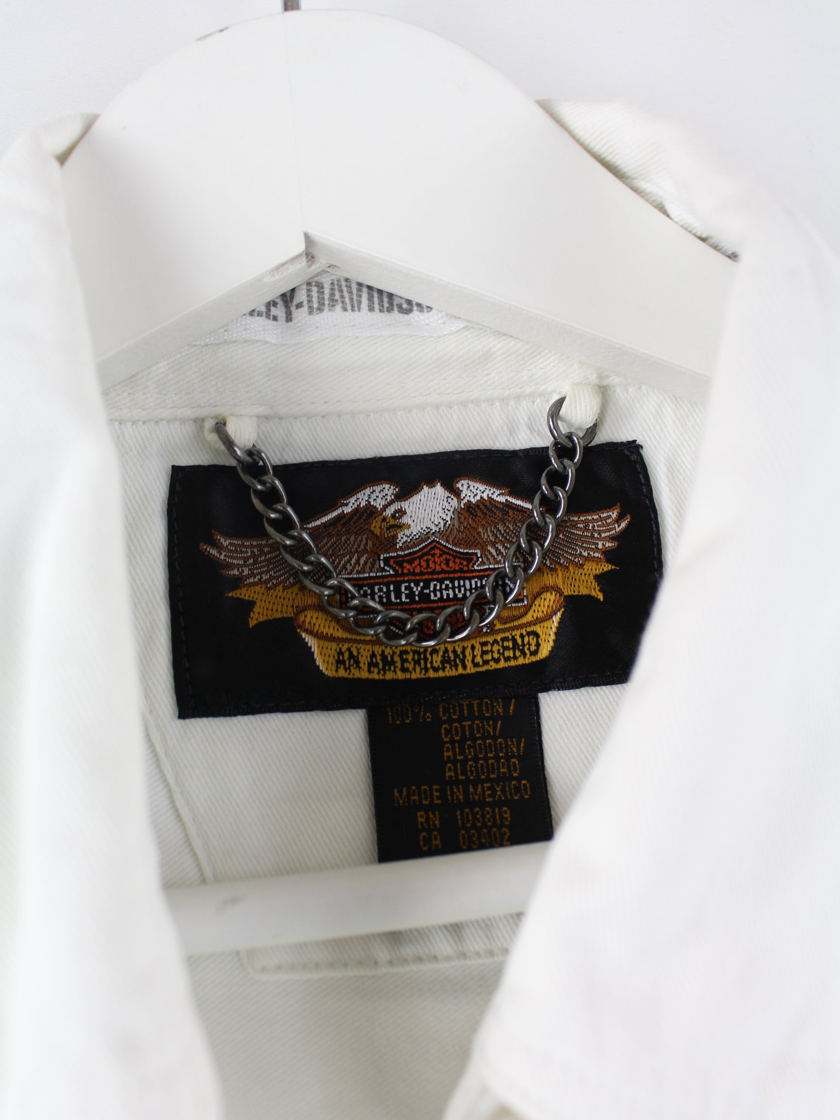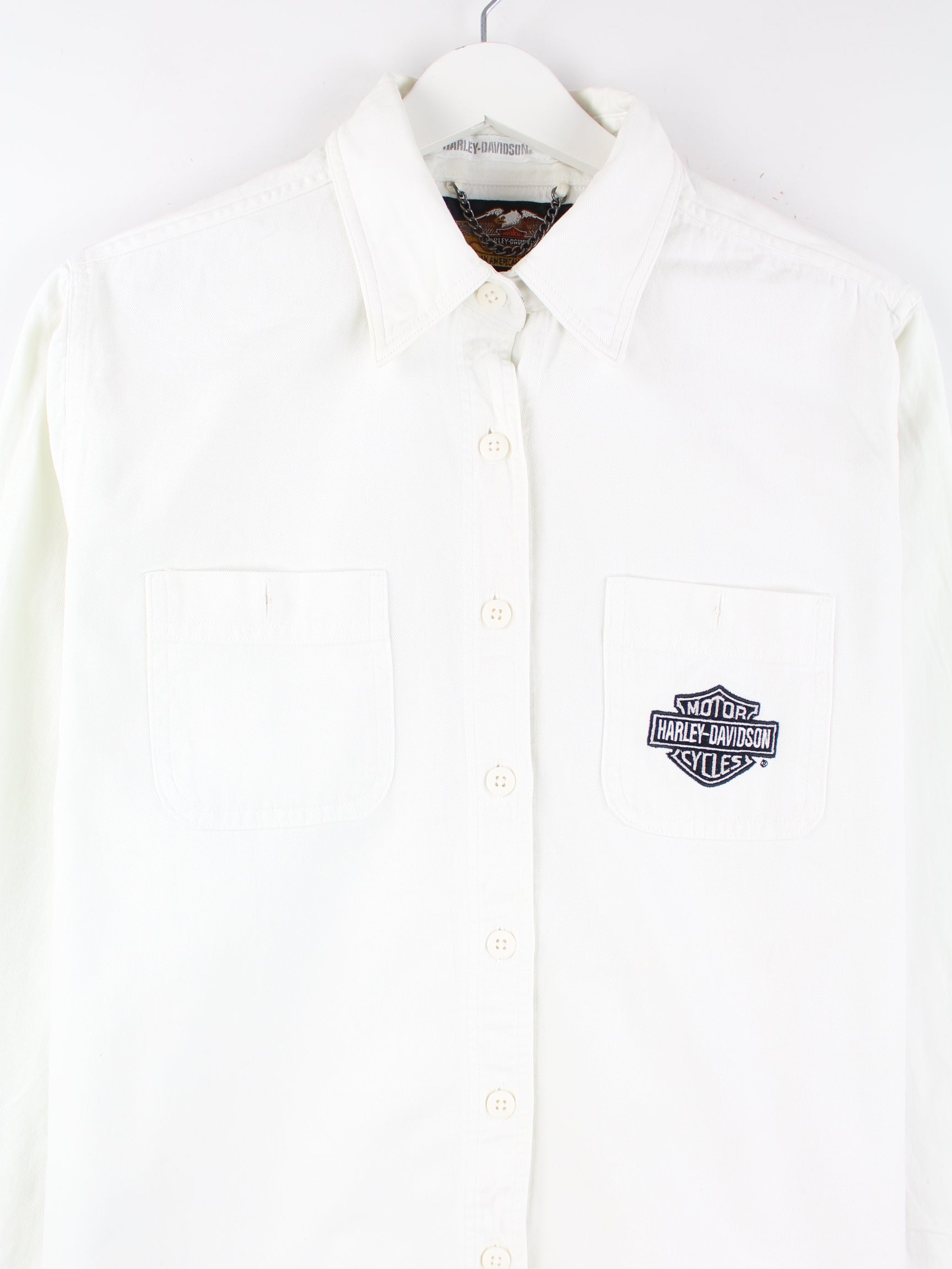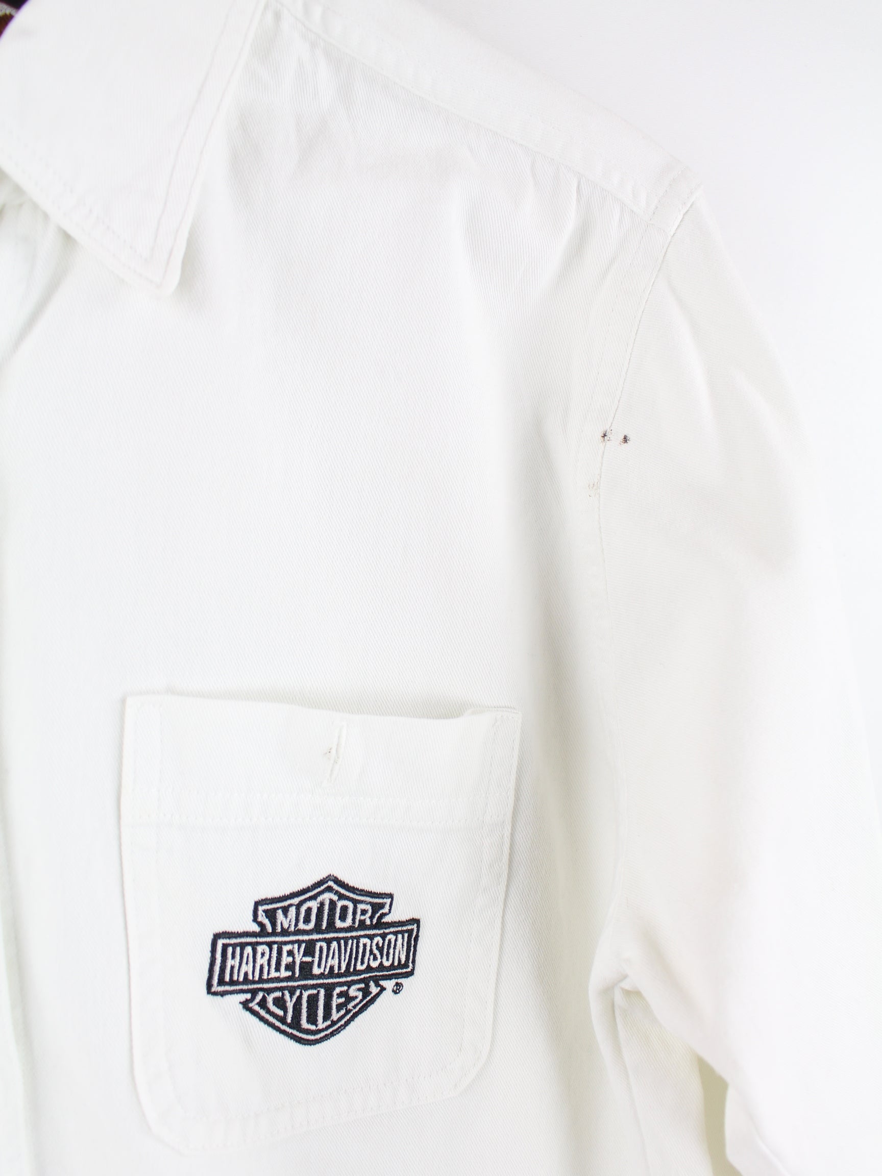Weißes Freizeit Hemd mit Stick der Brand Harley Davidson aus den 90'ern in Größe M. Es ist aus Baumwolle angefertigt und in gutem Zustand in Stock.