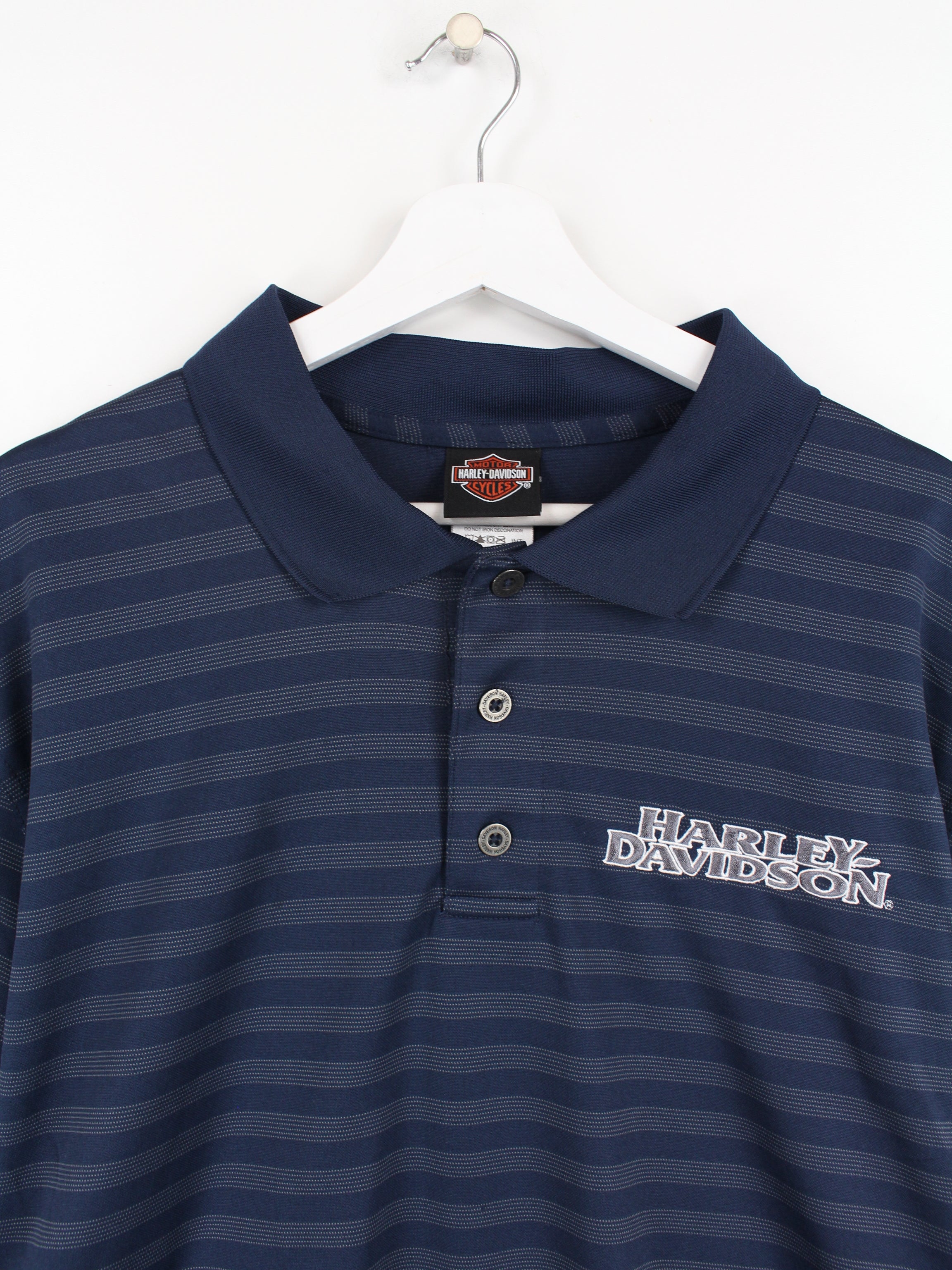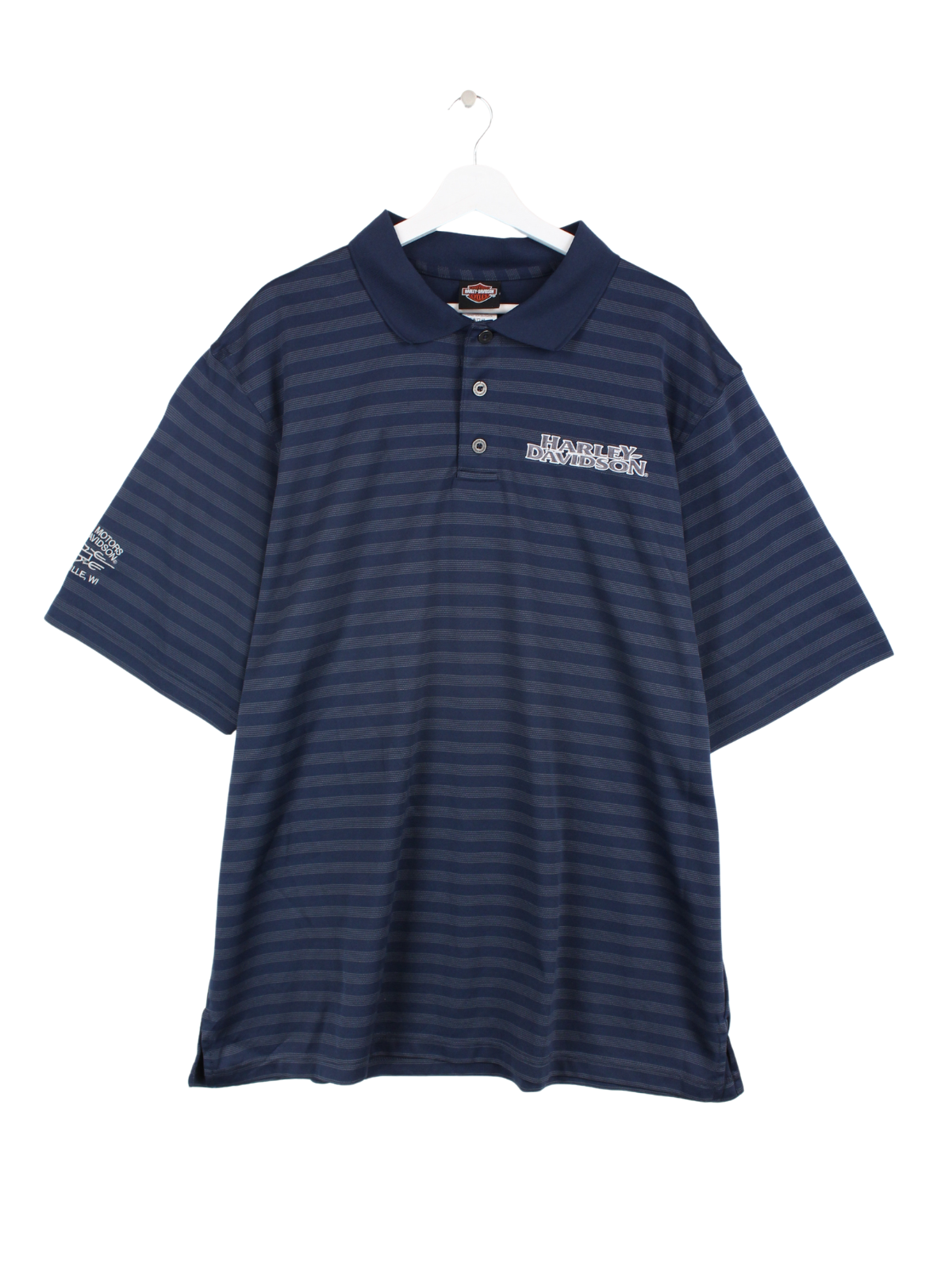 Harley Davidson Poloshirt Blau Gestreift XXL