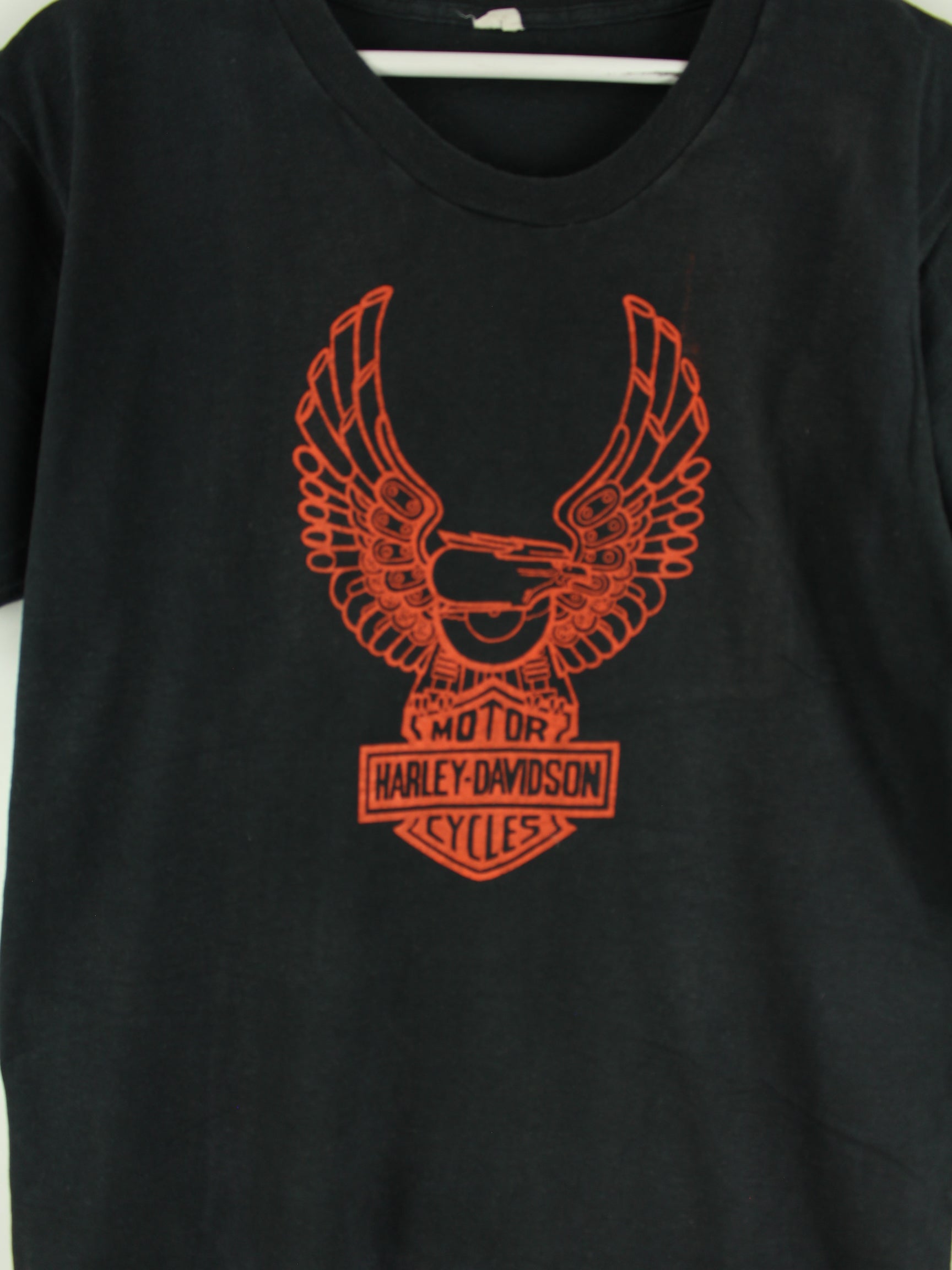 Schwarzes T-Shirt der Marke Harley Davidson in Größe M. Es ist aus Baumwolle gefertigt. Den Zustand würden wir als 'In Ordnung' bezeichnen (vergl. Bilder).Mit tollem Print.