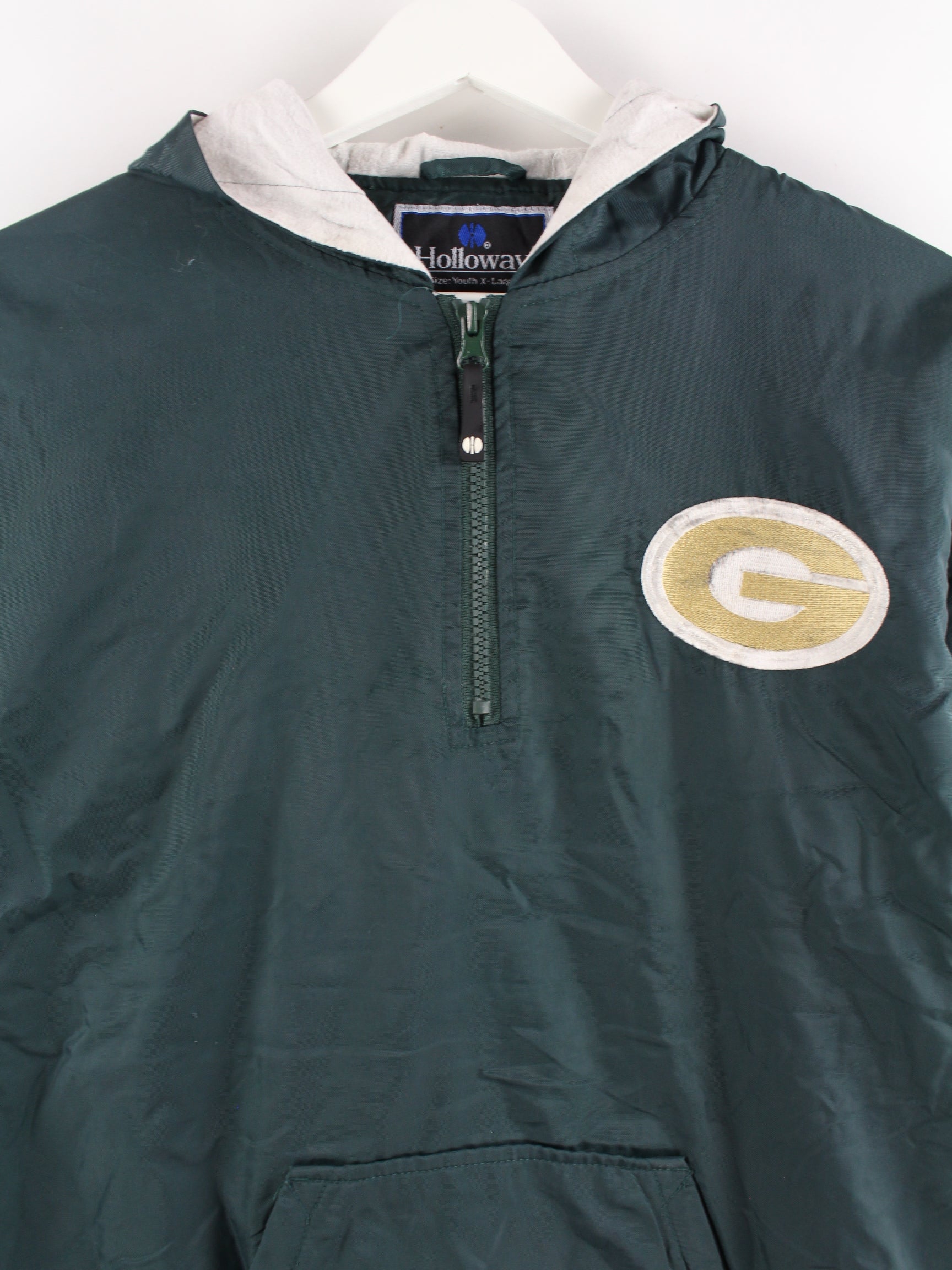 Leichte Jacke der Marke Holloway mit half Zip in Größe S aus den 90'ern. Sie ist aus Synthetik produziert und in Grün bei uns zu bekommen.