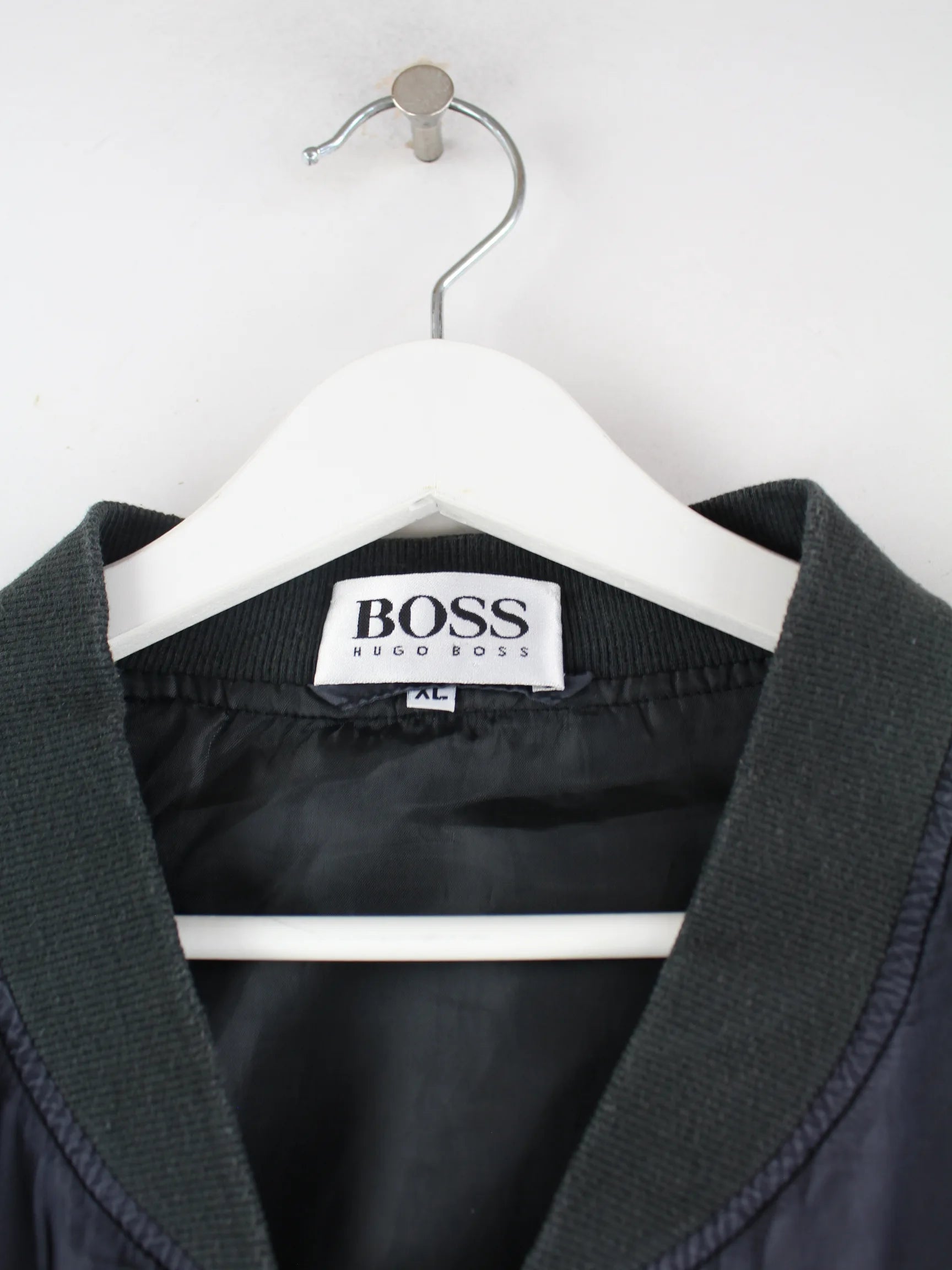 Schwarze Trainingsjacke von Hugo Boss aus den 80'ern in Größe XL. Sie ist aus Synthetik hergestellt und in gutem Zustand in Stock.