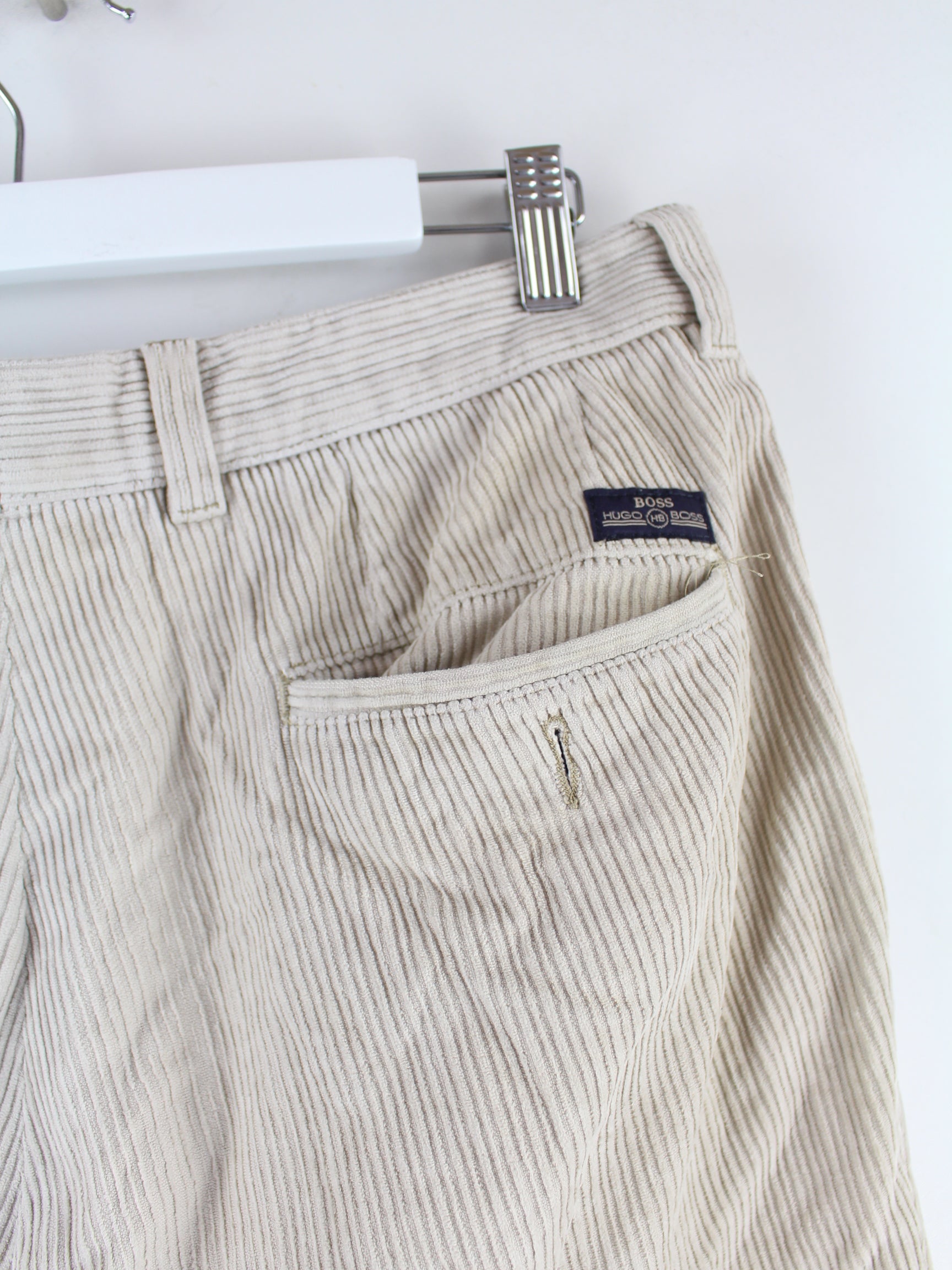 Beigefarbene Hugo Boss Cord-Hose in W34 x L32 aus Baumwolle und in gutem Zustand.