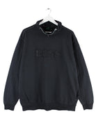 Grauer Sweater mit gesticktem Logo vom Label Hugo Boss in Größe L. Er ist aus einer Baumwollmischung produziert und in sehr gutem Zustand bei uns vorrätig.