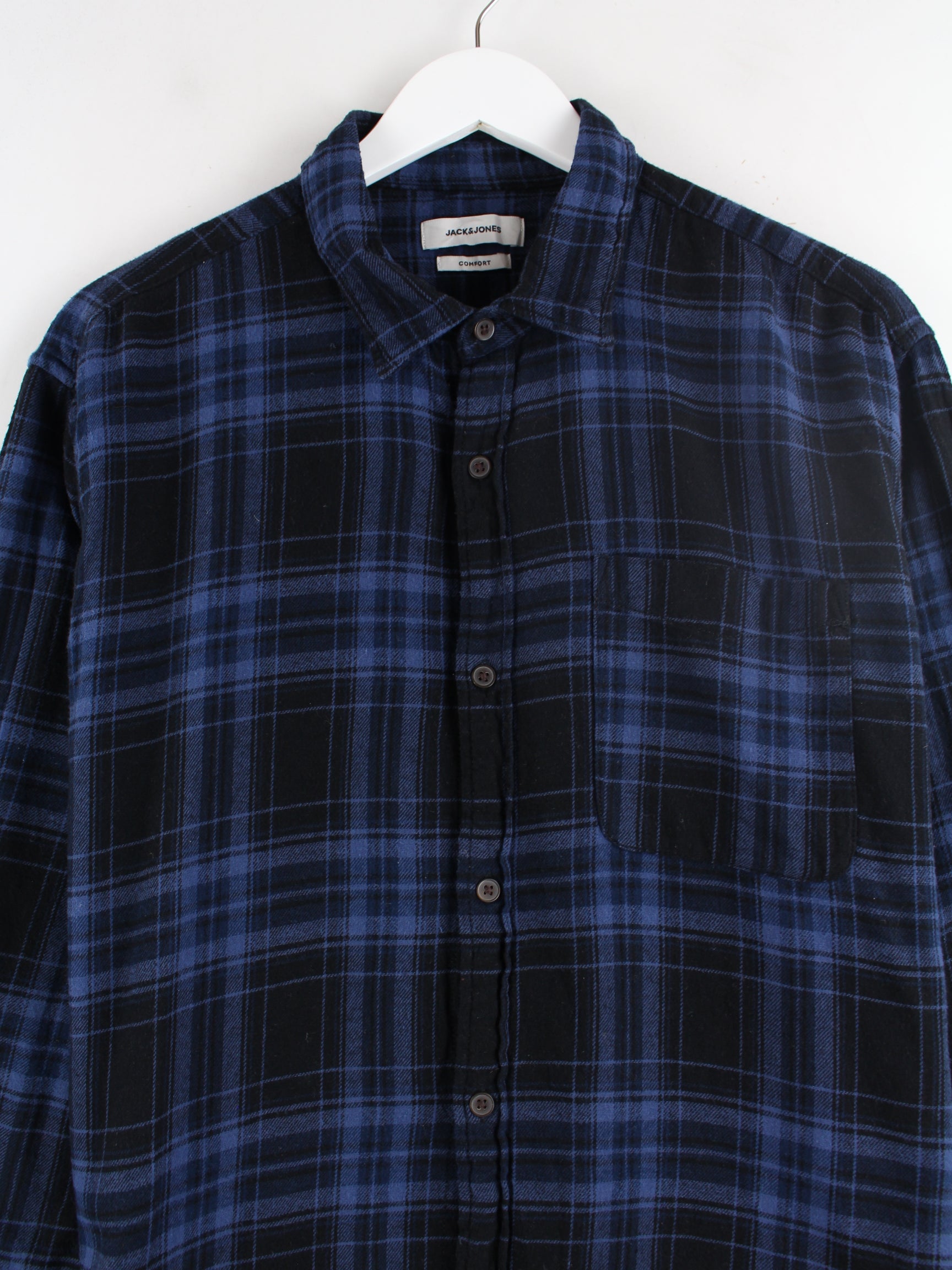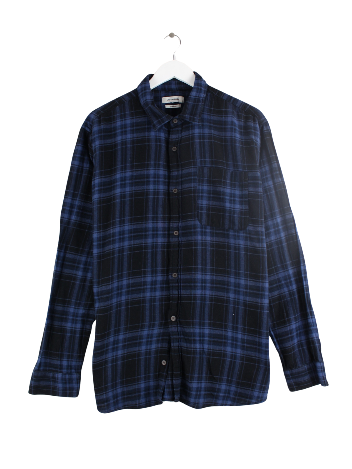 Freizeit Hemd der Marke Jack & Jones in Größe L. Es ist aus Baumwolle gemacht und in Blau in Stock.