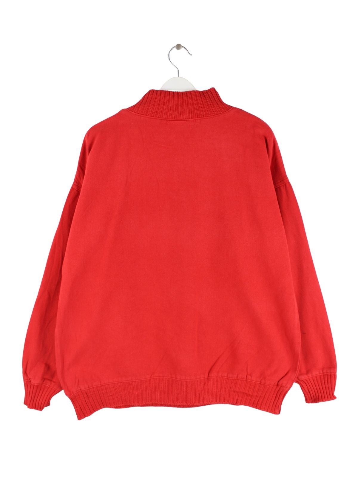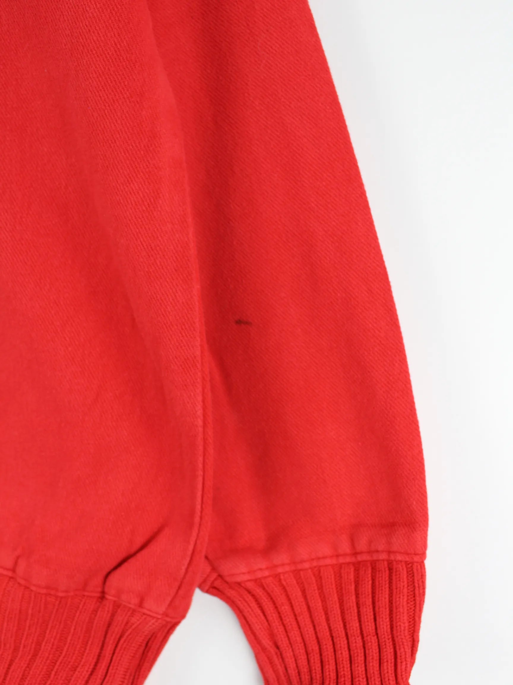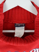 Sweater vom Label Jansport in Größe L aus den 80'ern. Er ist aus einer Baumwollmischung produziert und in Rot bei uns zu bekommen. Mit schönem College Print.