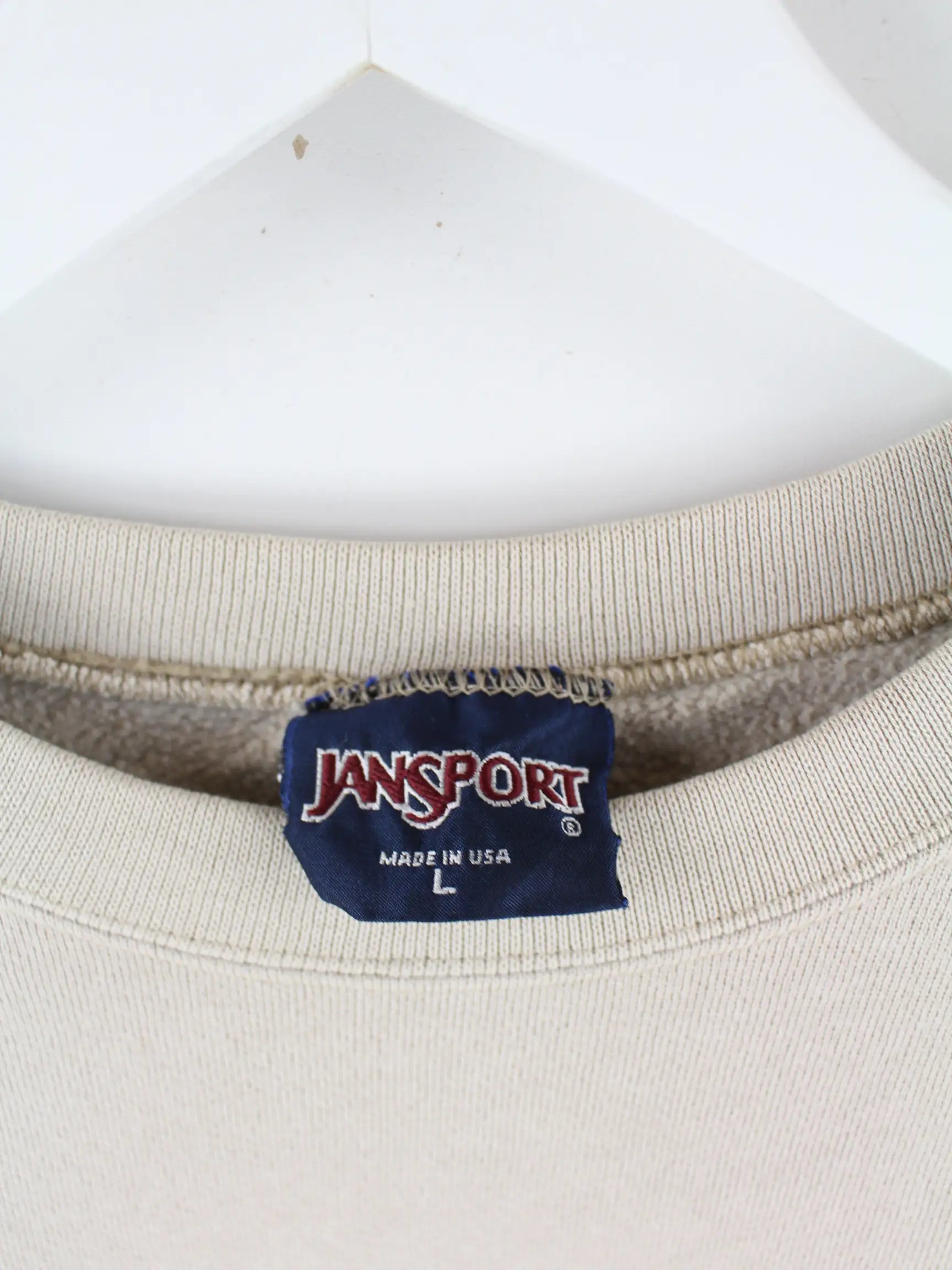 Grauer Sweater mit Stick der Brand Jansport aus den 90'ern in Größe L. Er ist aus einer Baumwollmischung gefertigt und in sehr gutem Zustand im Angebot.