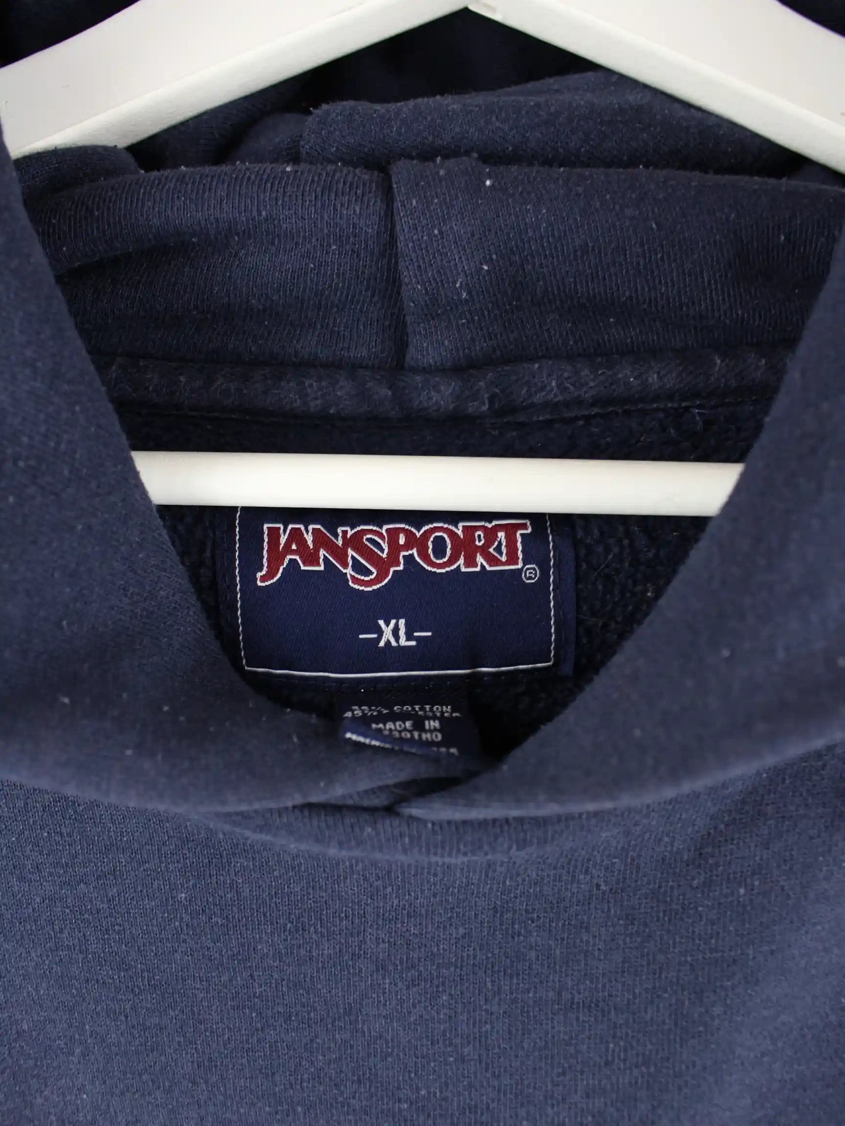 Hoodie vom Brand Jansport in Größe XL aus den 90'ern. Er ist aus einer Baumwollmischung und in Blau auf Lager.