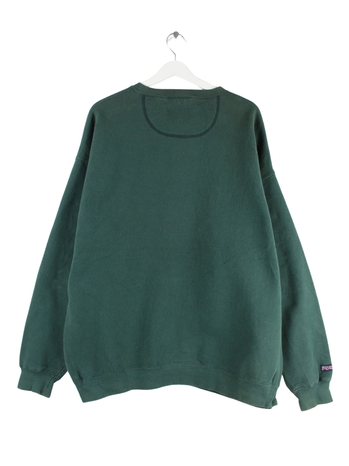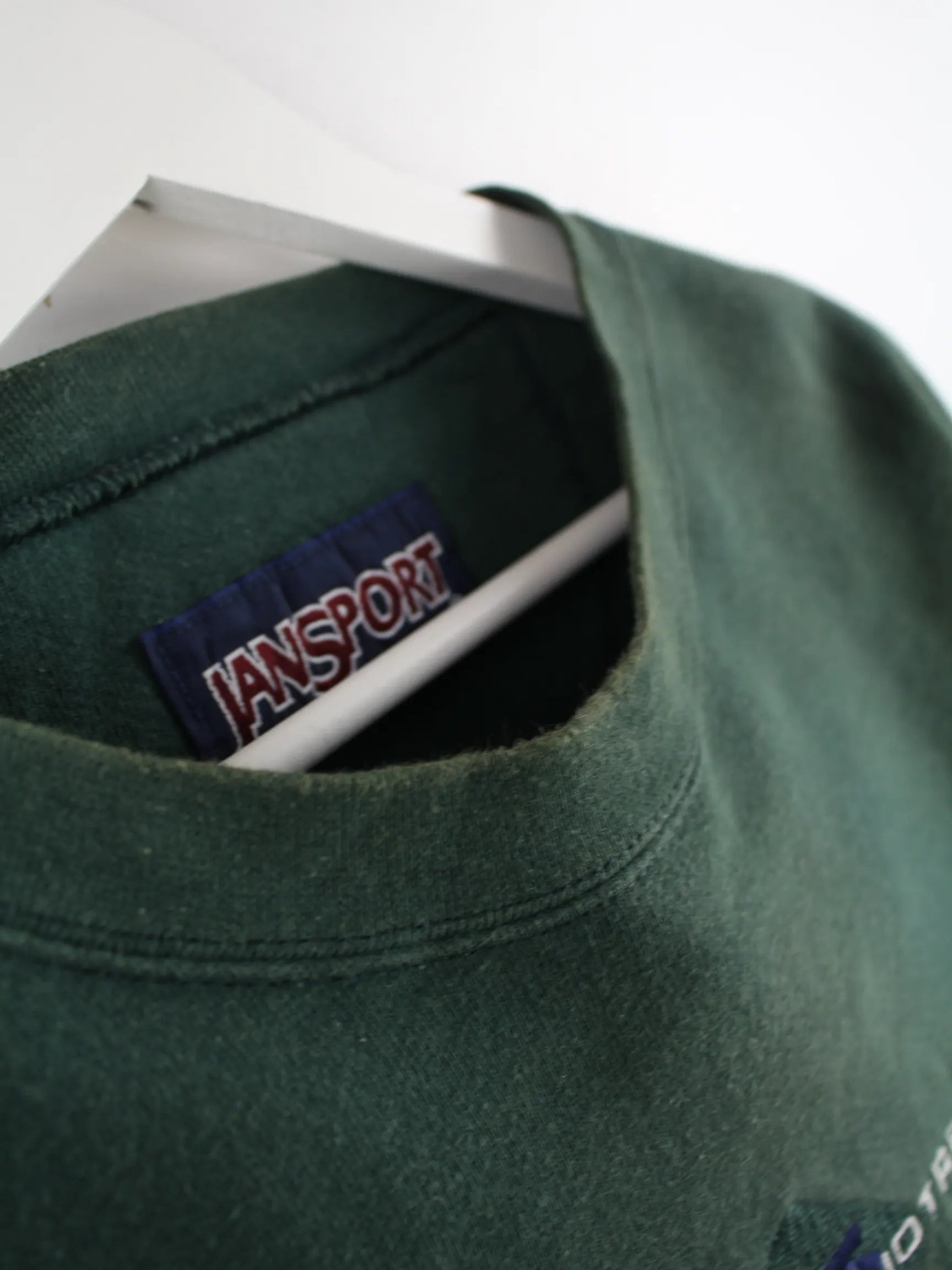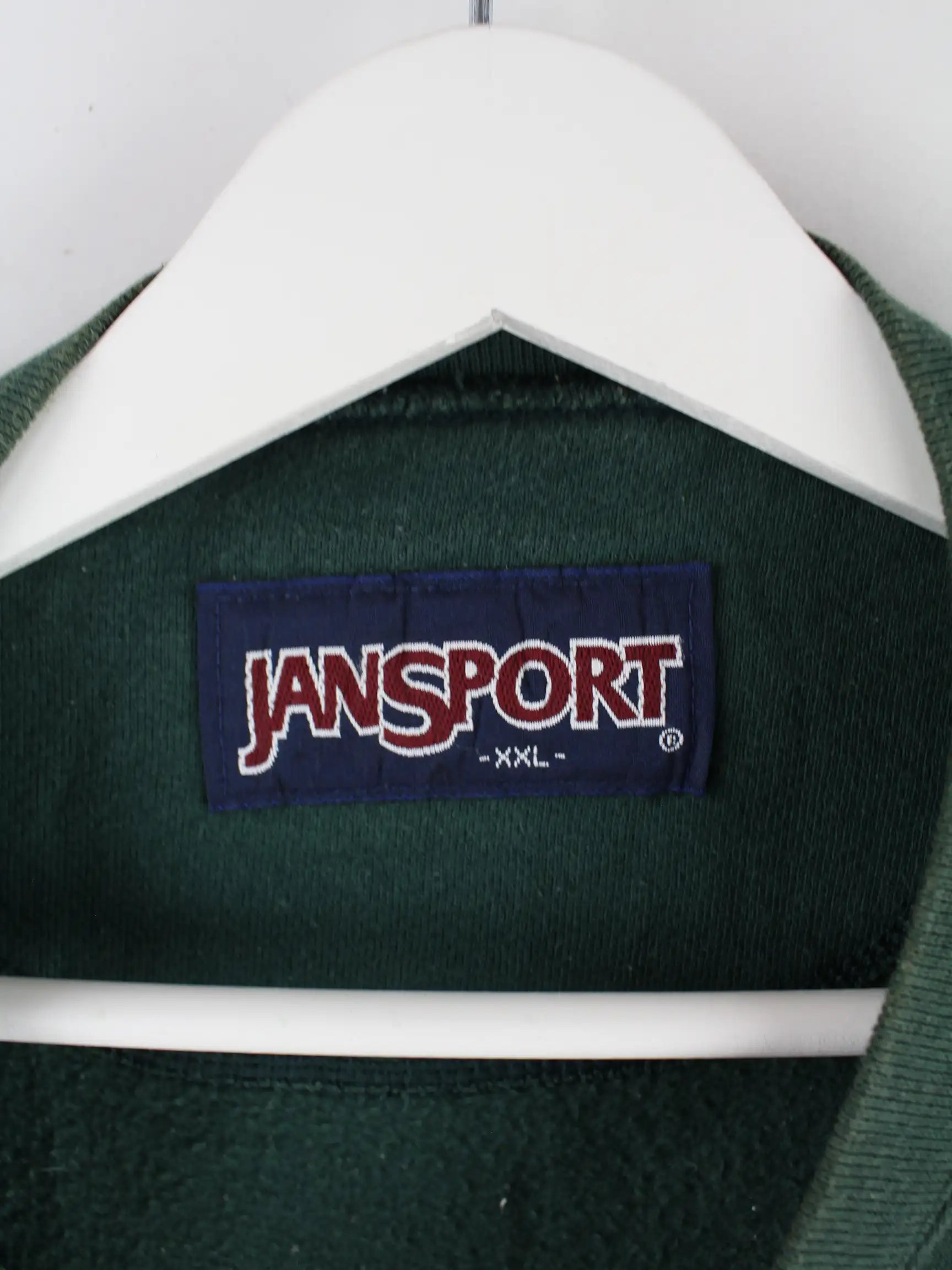 Sweater der Marke Jansport in Größe XXL aus den 90'ern. Er ist aus einer Baumwollmischung produziert und in Grün vorrätig.