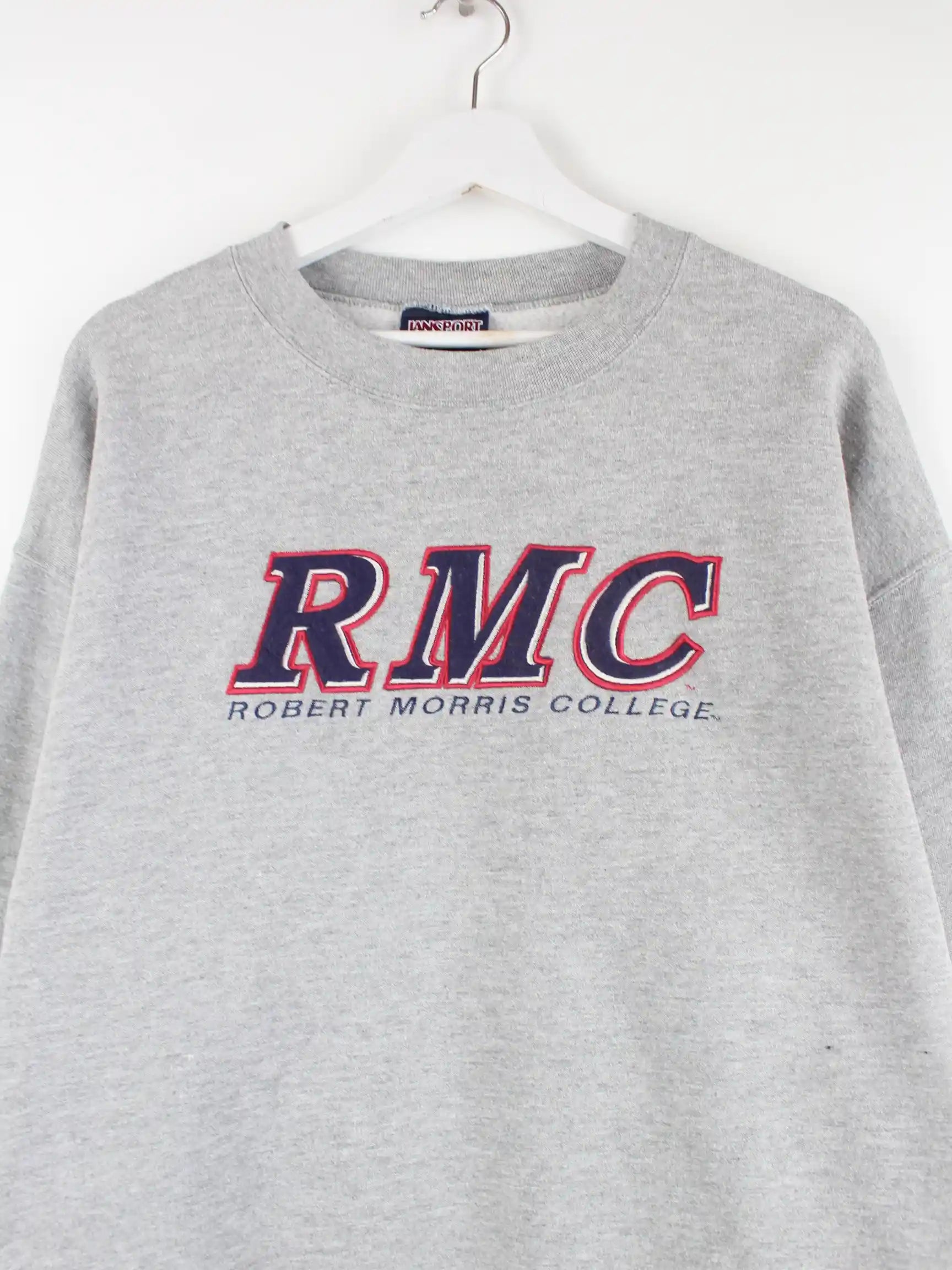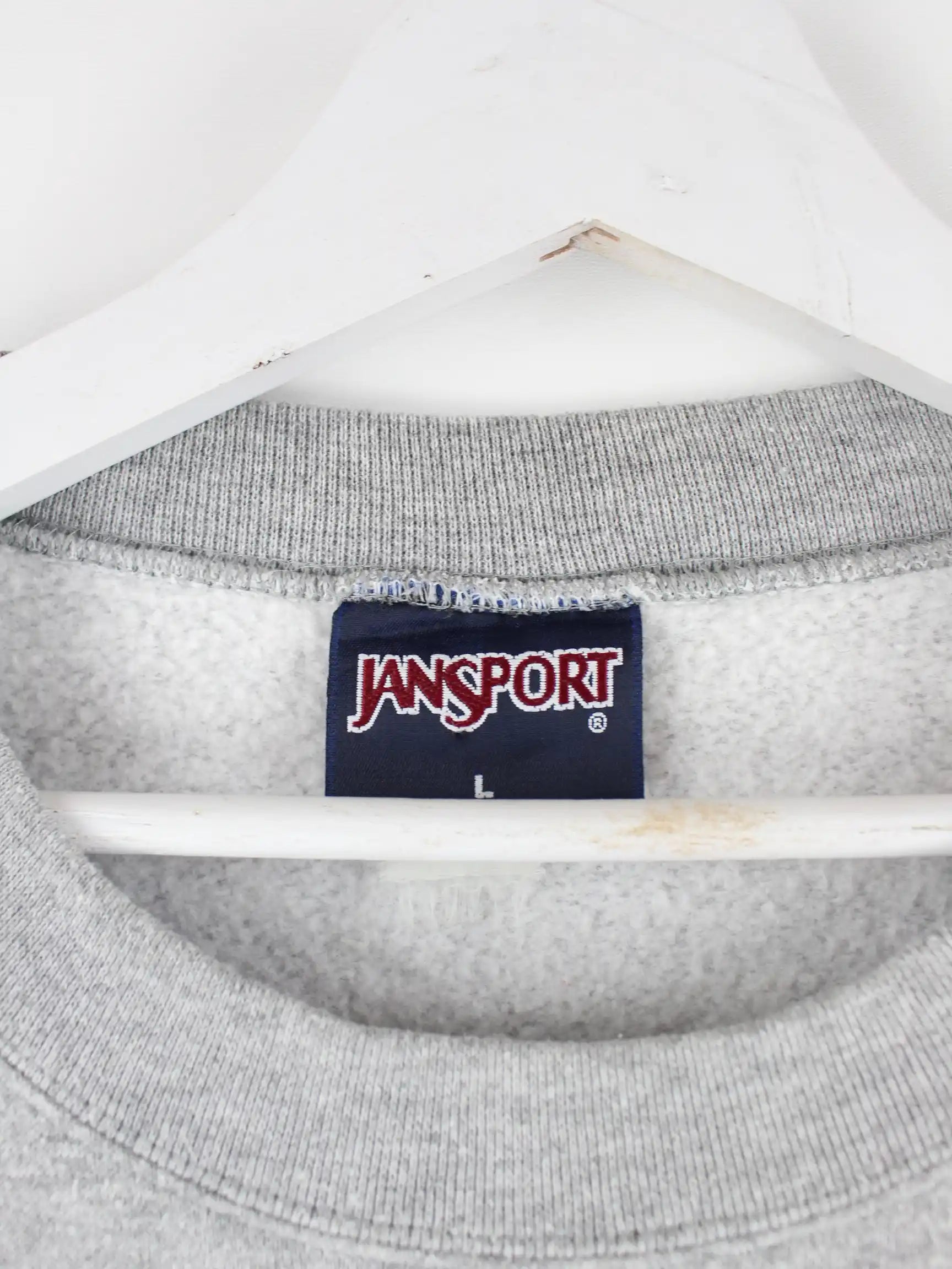 Sweater des Labels Jansport in Größe L aus den 90'ern. Er ist aus einer Baumwollmischung und in Grau im Bestand.