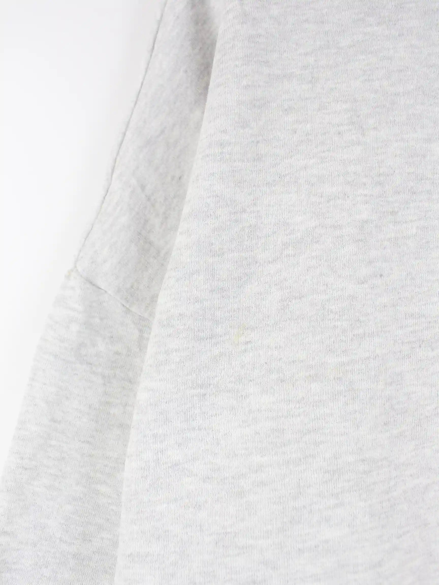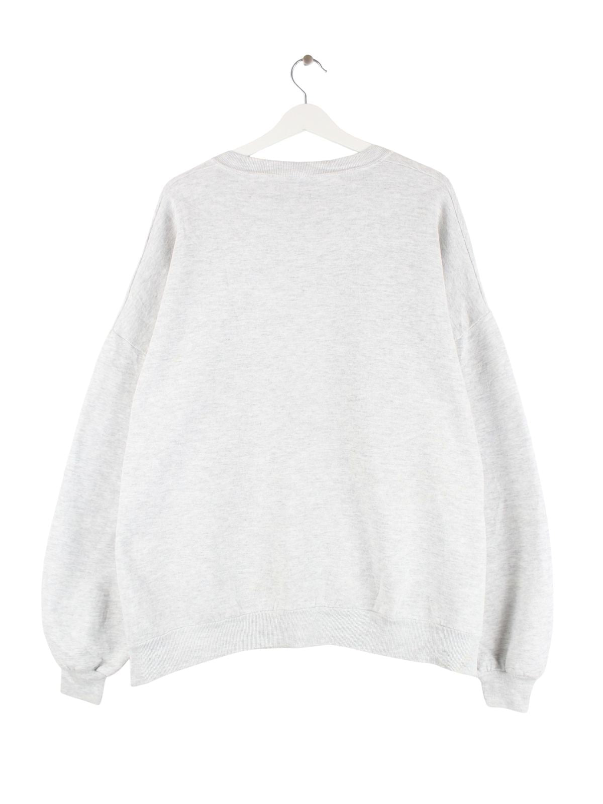 Grauer Sweater der Marke Jerzees in Größe 3XL. Er ist aus einer Baumwollmischung gefertigt. Den Zustand würden wir als 'In Ordnung' bezeichnen (vergl. Bilder).Mit tollem Baseball Print.