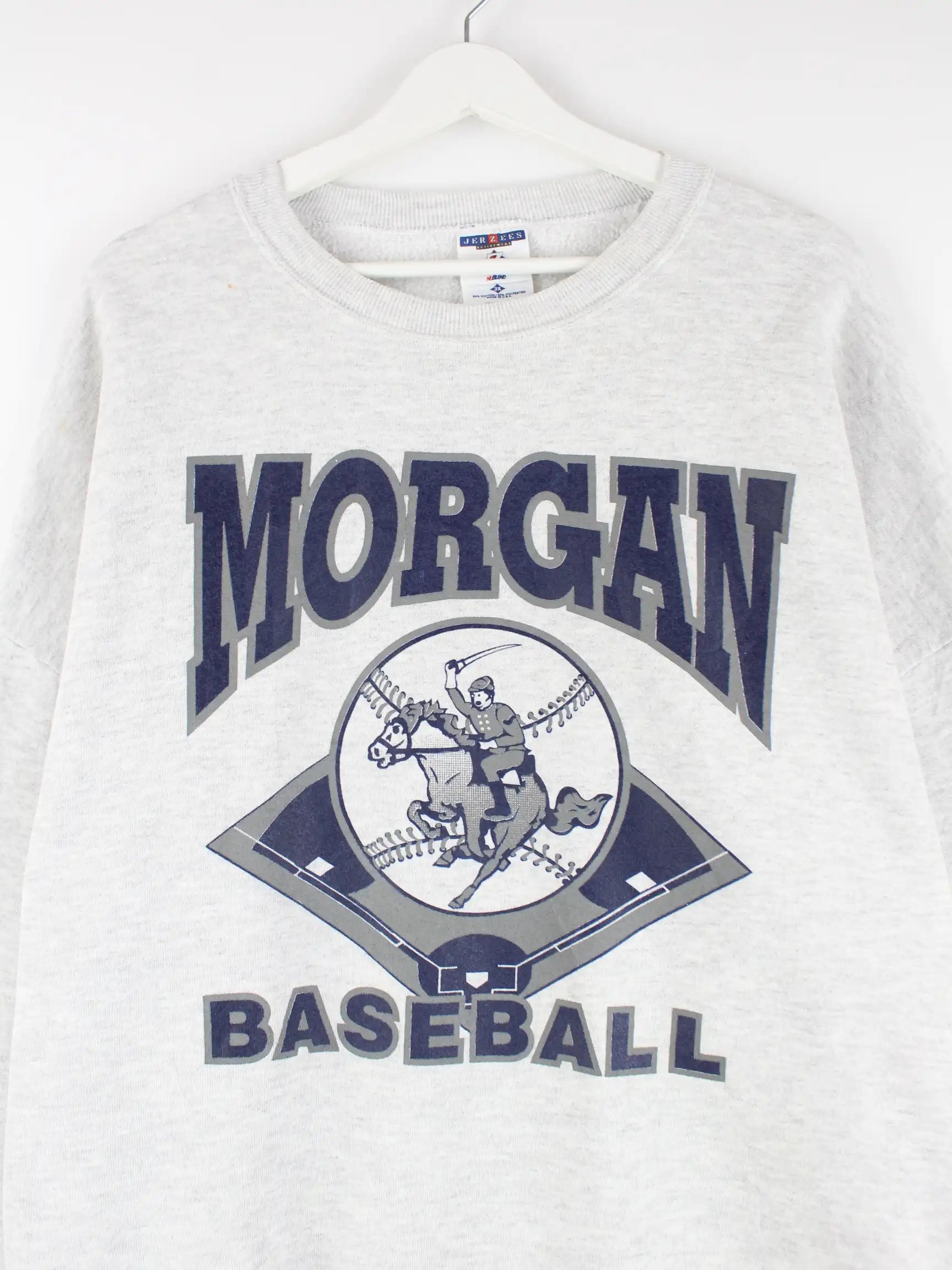 Jerzees 00s Morgan Baseball Print Sweater Grau 3XL