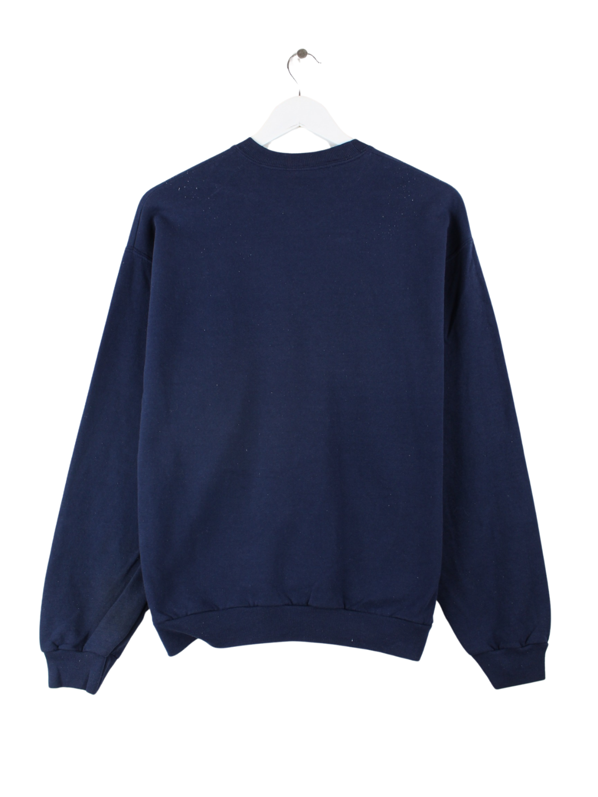 Blauer Sweater des Labels Jerzees in Größe M. Er ist aus einer Baumwollmischung angefertigt und in gutem Zustand lieferbar. Mit tollem Champions Print.