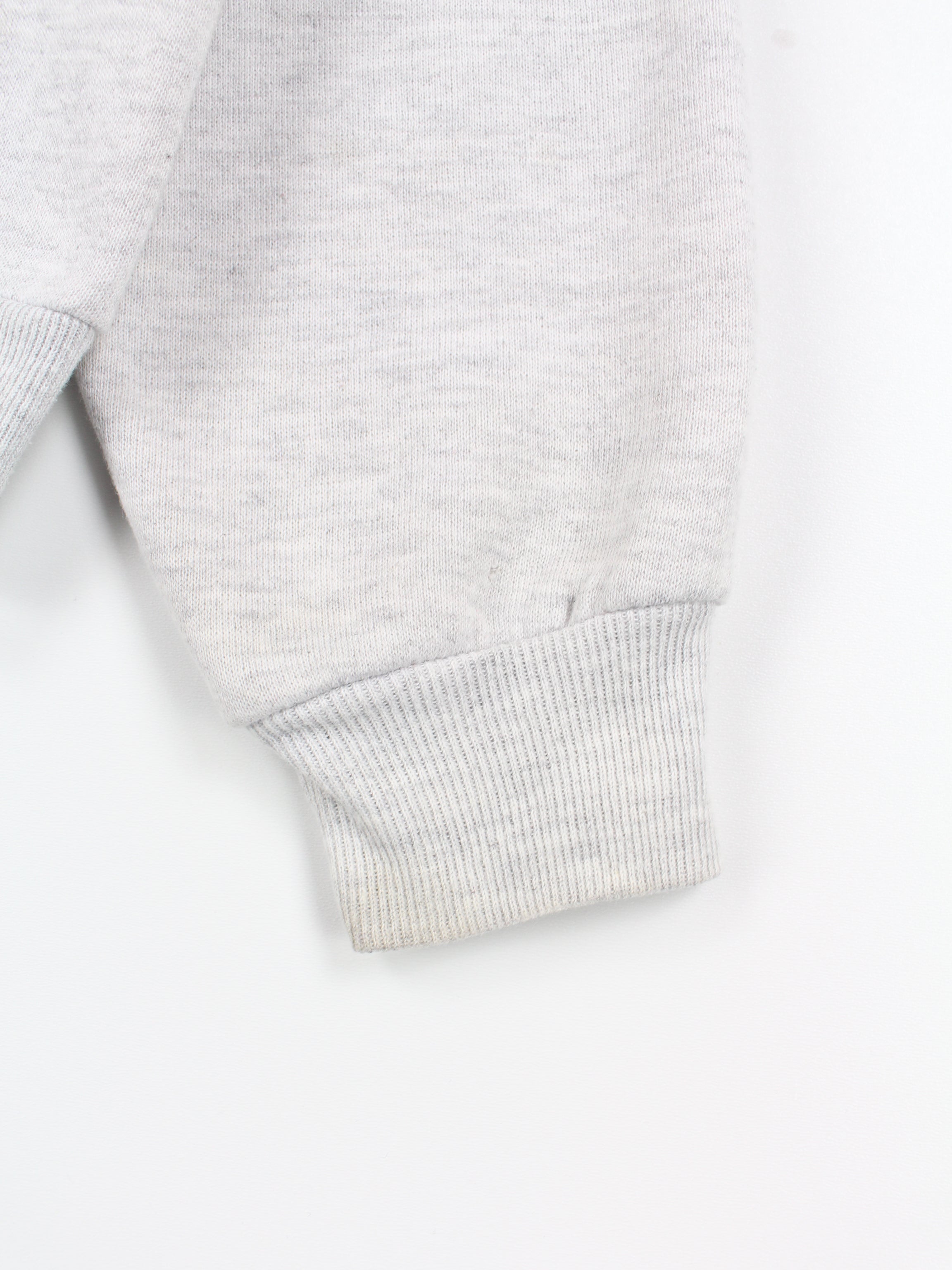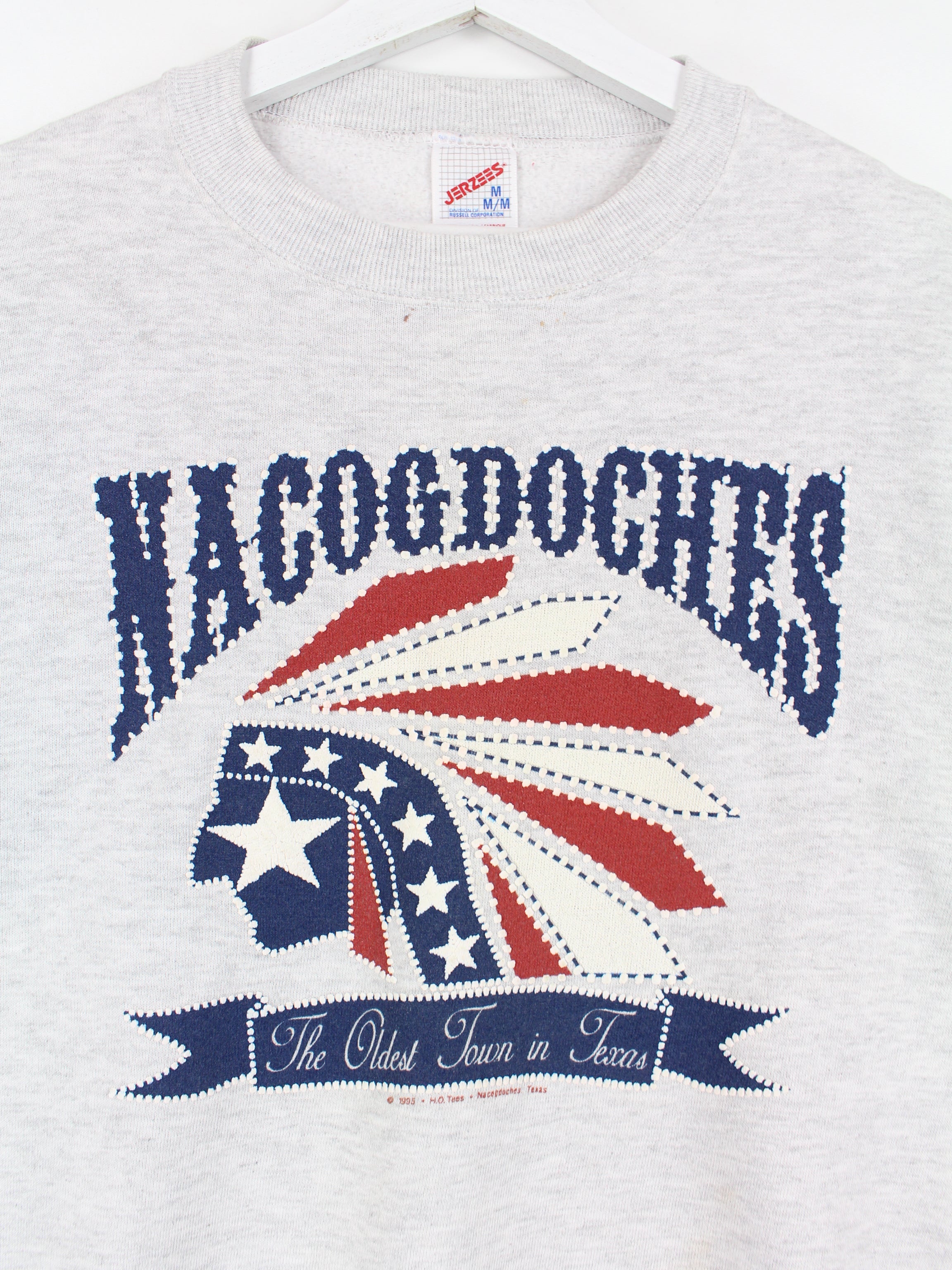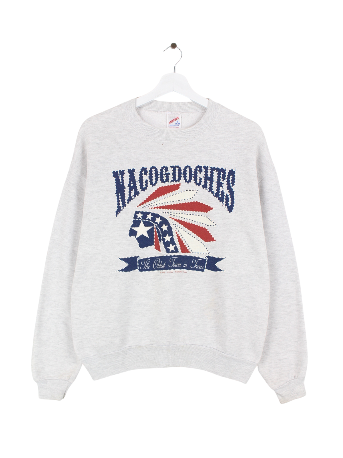 Grauer made in USA Sweater mit großem Nacogdoches Print.