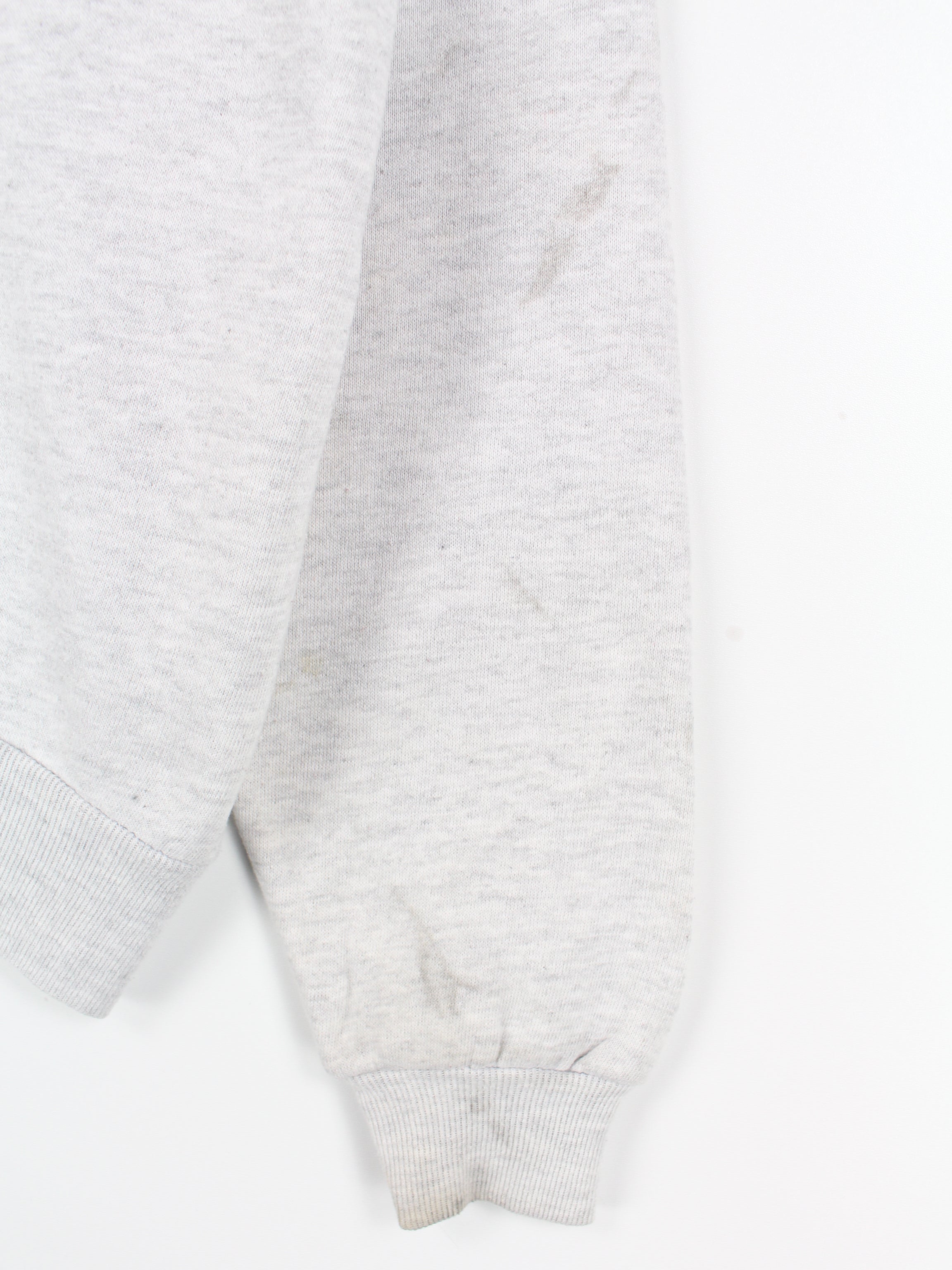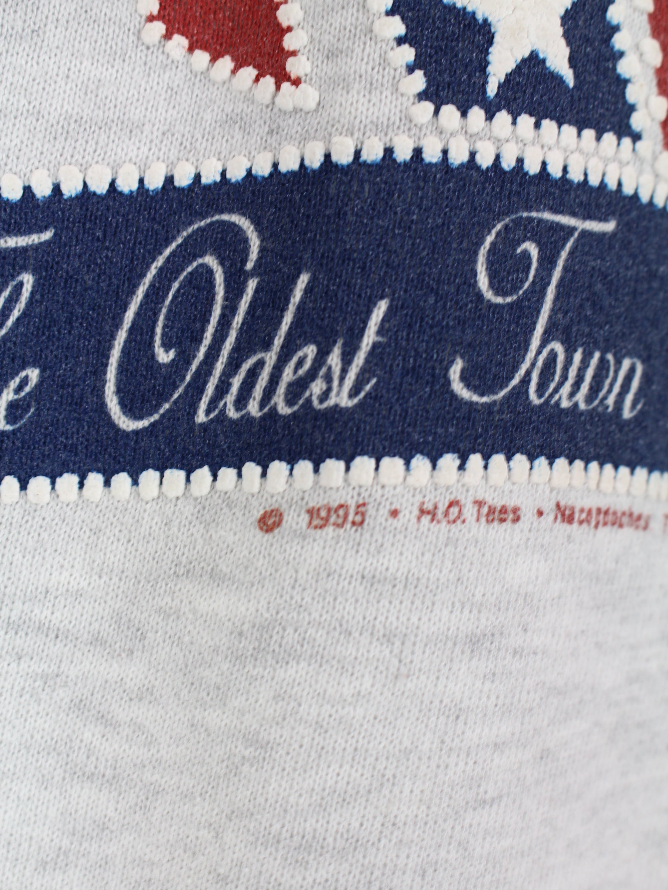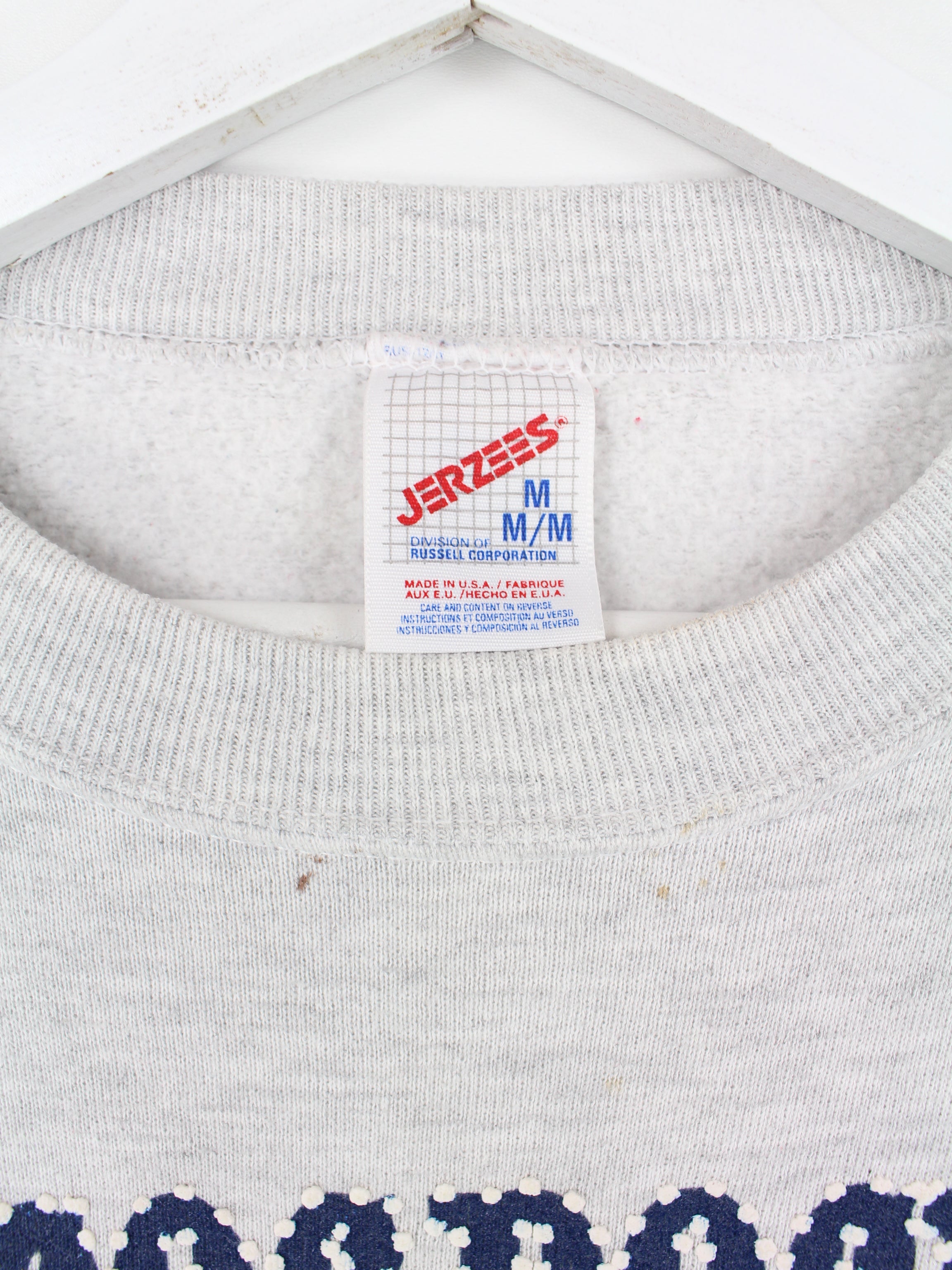 Grauer made in USA Sweater mit großem Nacogdoches Print.