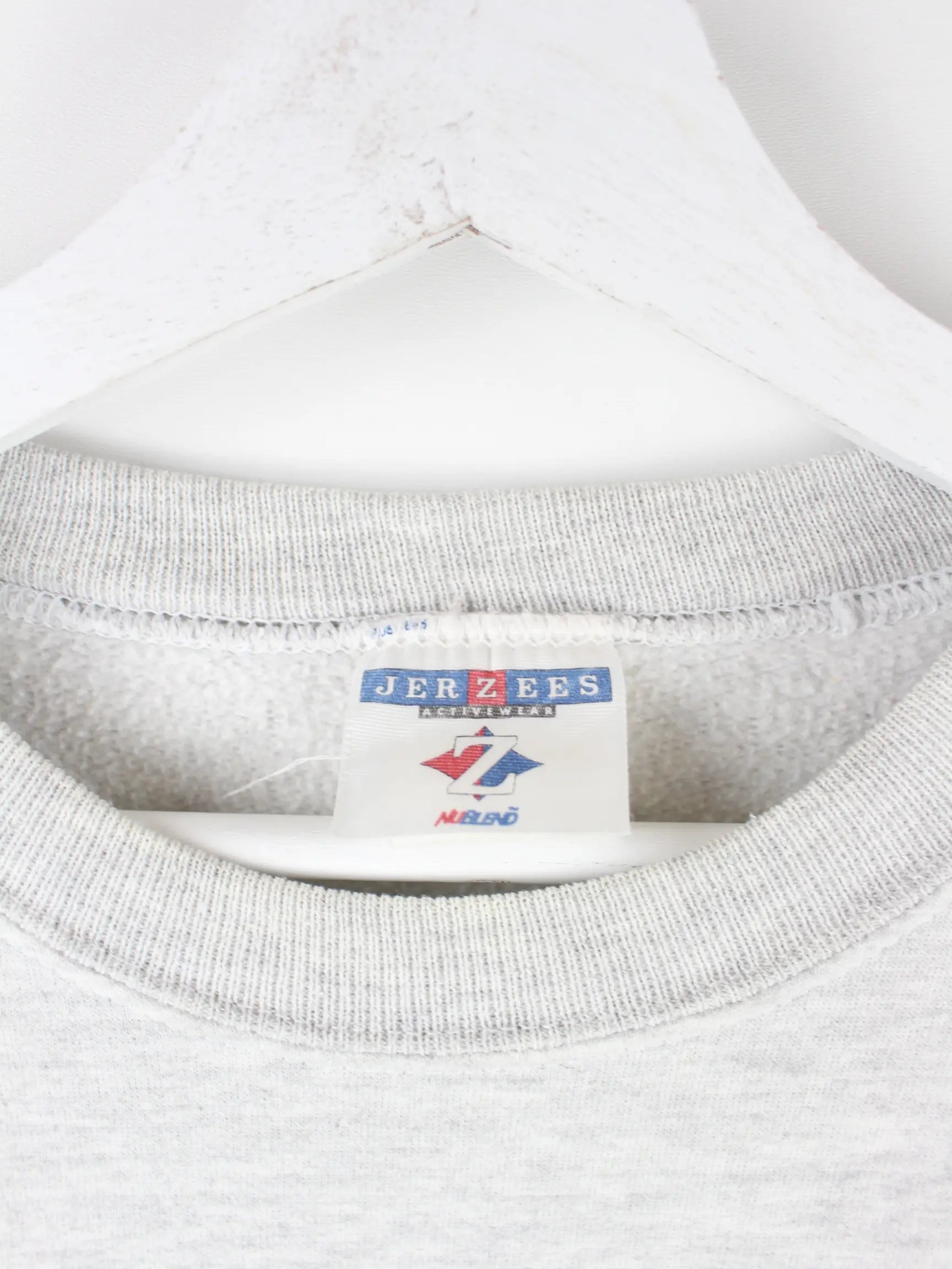 Grauer Sweater des Labels Jerzees in Größe L. Er ist aus einer Baumwollmischung produziert und in sehr gutem Zustand im Angebot. Mit seltenem Buckeyes Print.