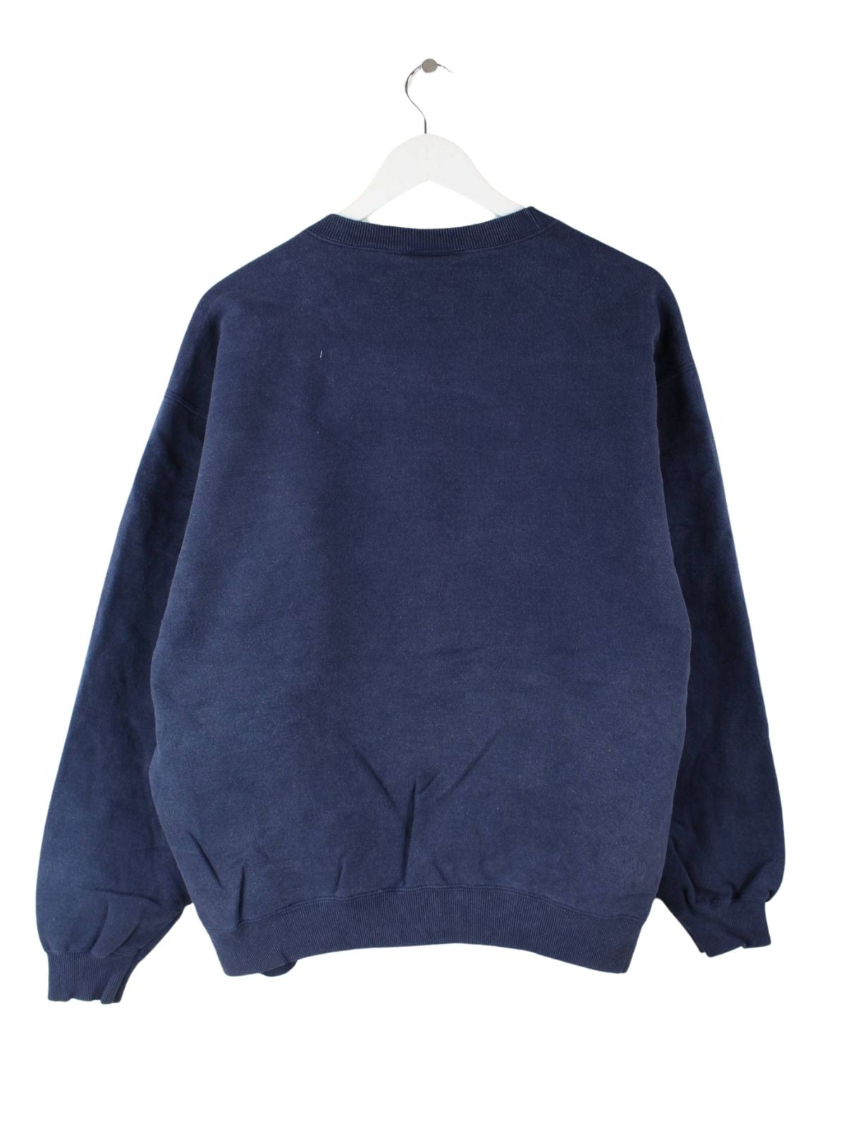 Blauer Sweater mit gesticktem Logo aus dem Hause Jerzees in Größe L. Er ist aus einer Baumwollmischung produziert und in sehr gutem Zustand in Stock.