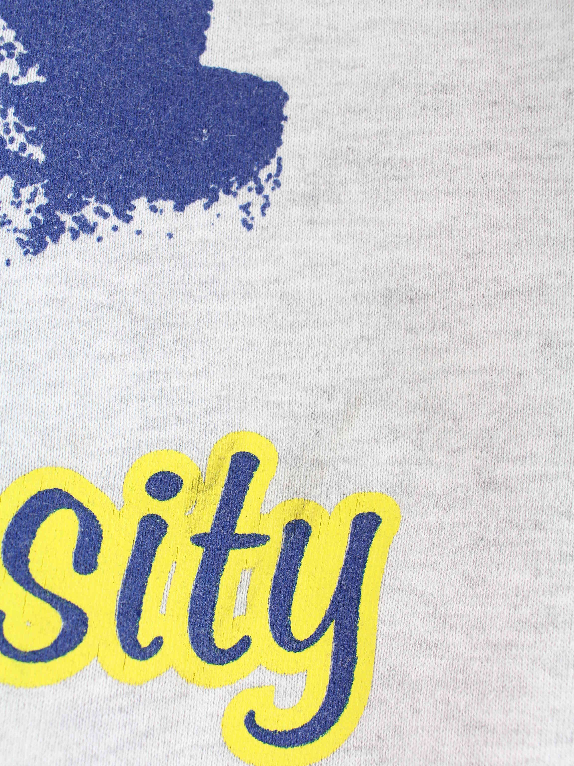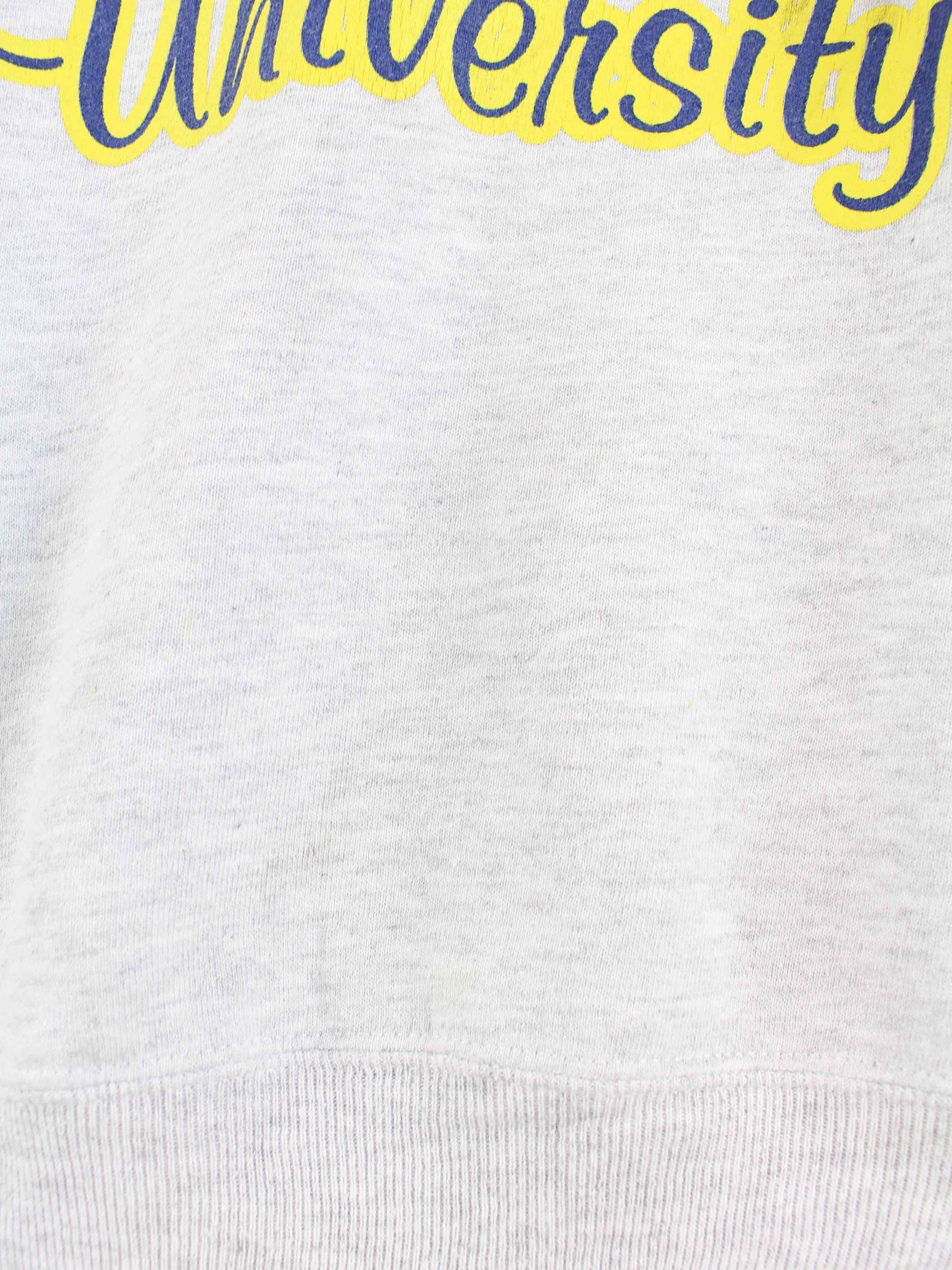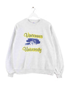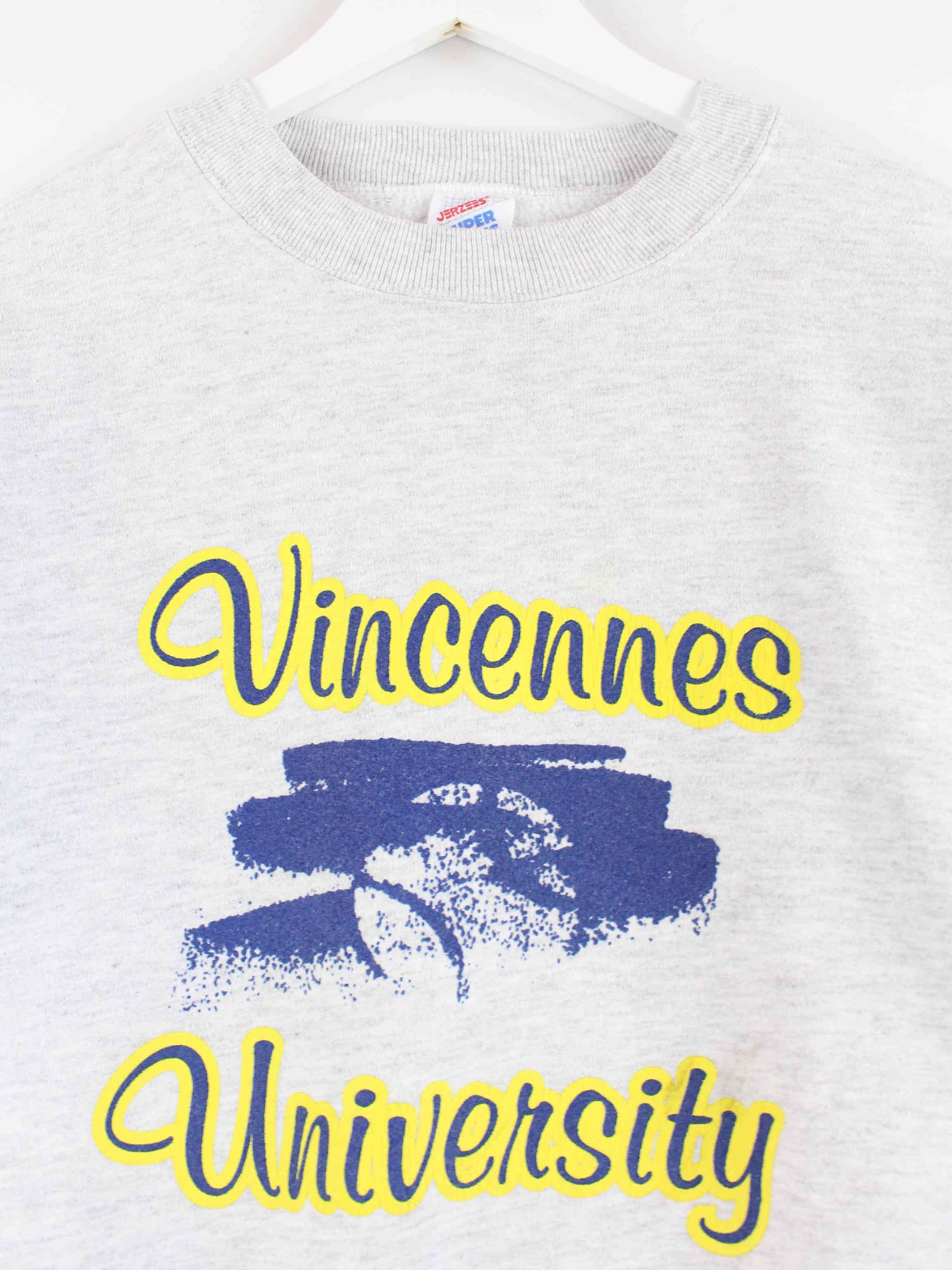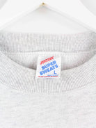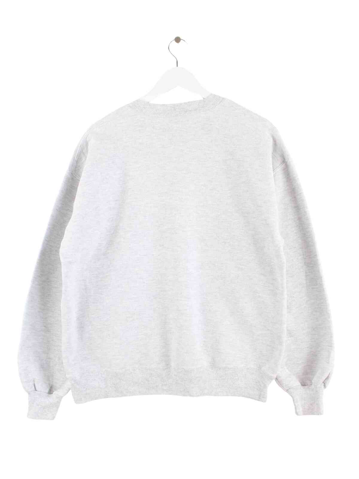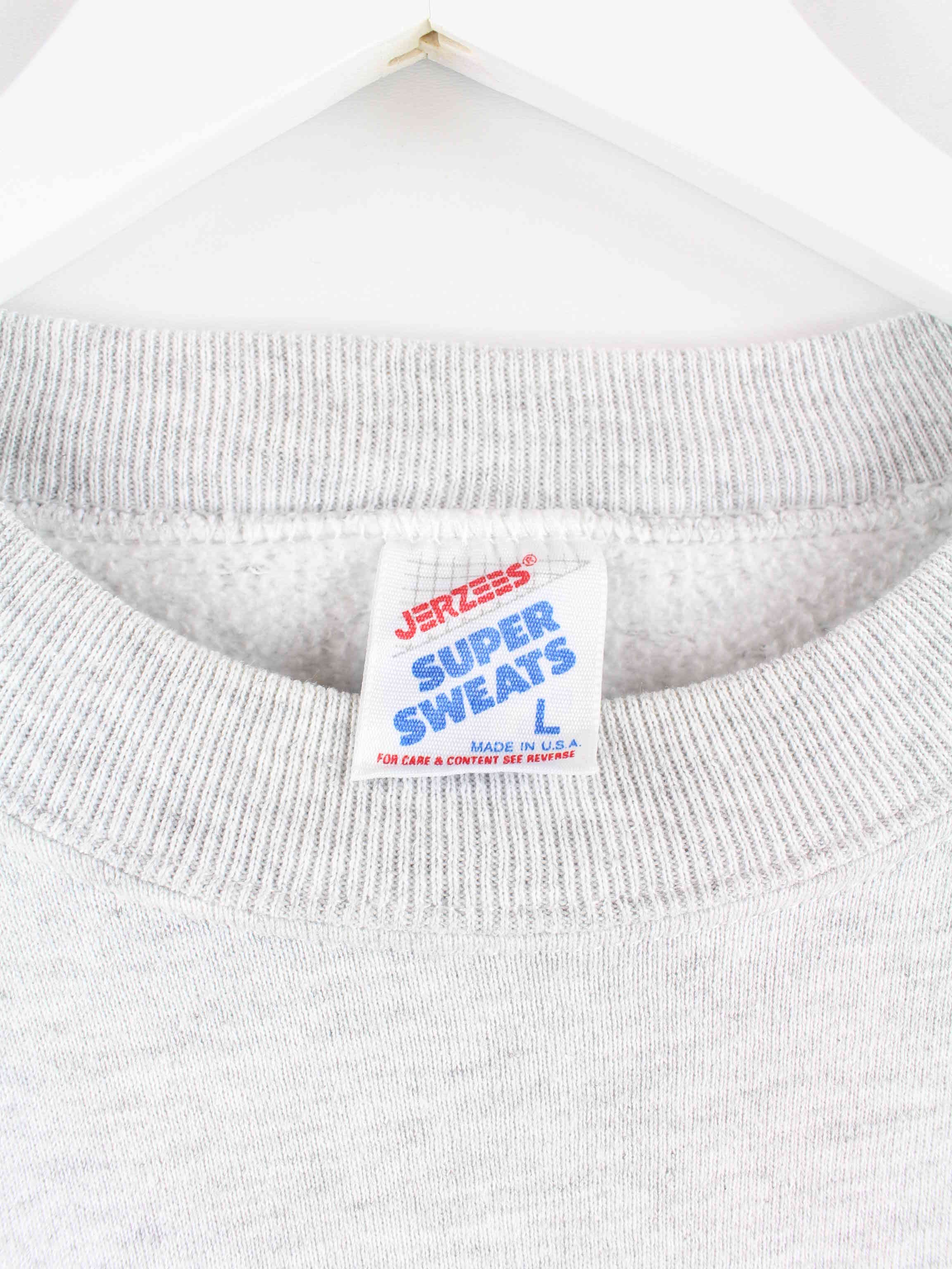 Grauer Jerzees 90s Print Sweater in Größe L, jedoch fällt er aus wie Größe M.