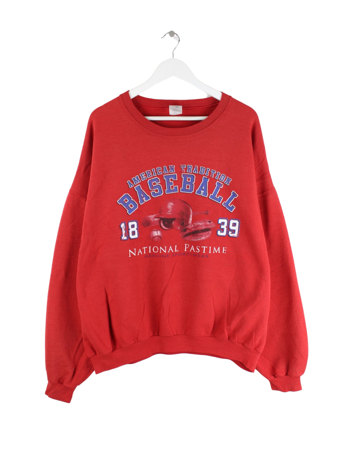 Jerzees 90s Vintage Baseball Print Sweater Rot XXL