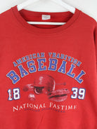 Sweater vom Brand Jerzees in Größe XXL aus den 90'ern. Er ist aus einer Baumwollmischung gefertigt und in Rot zu haben. Mit schönem Baseball Print.