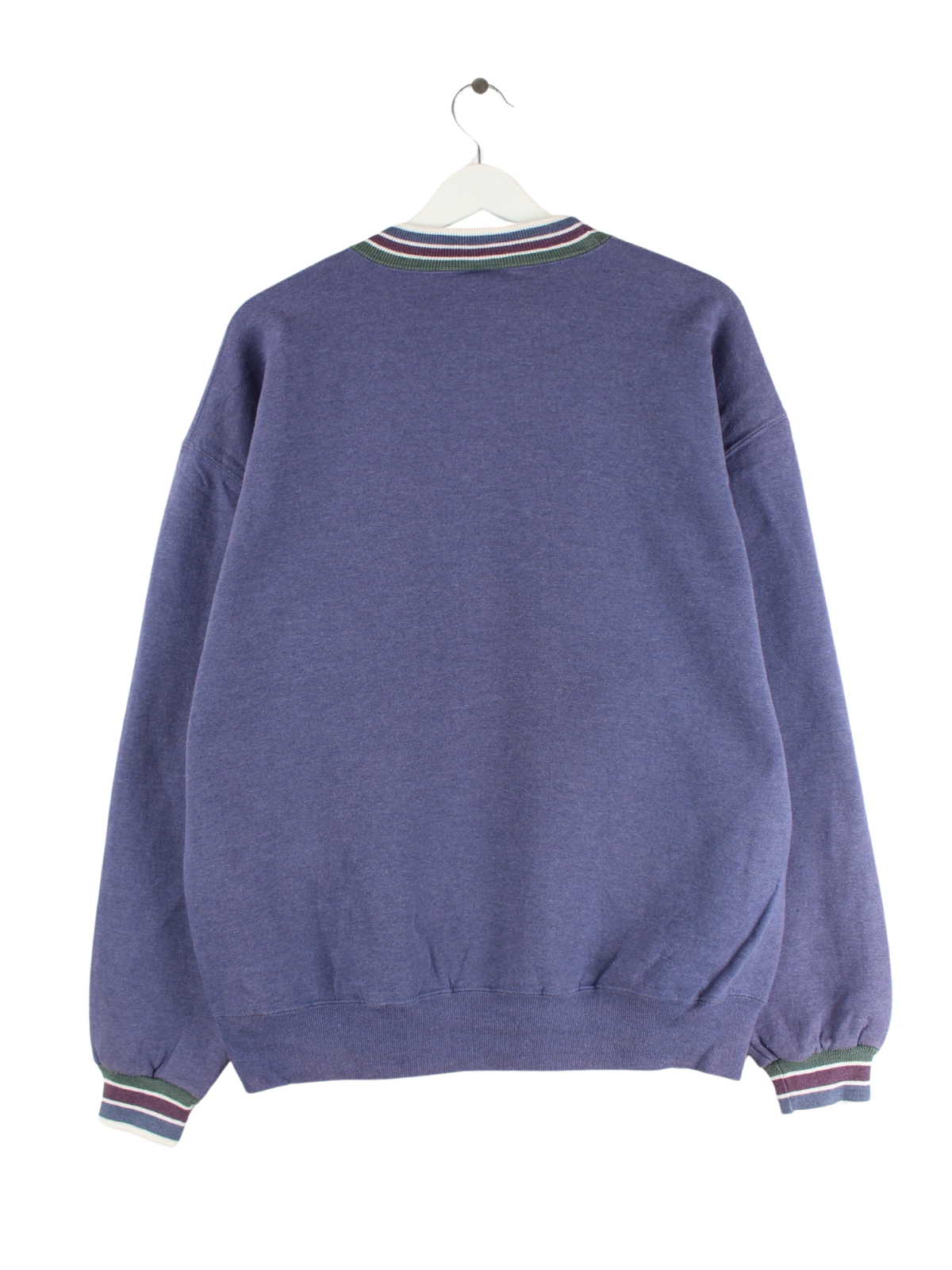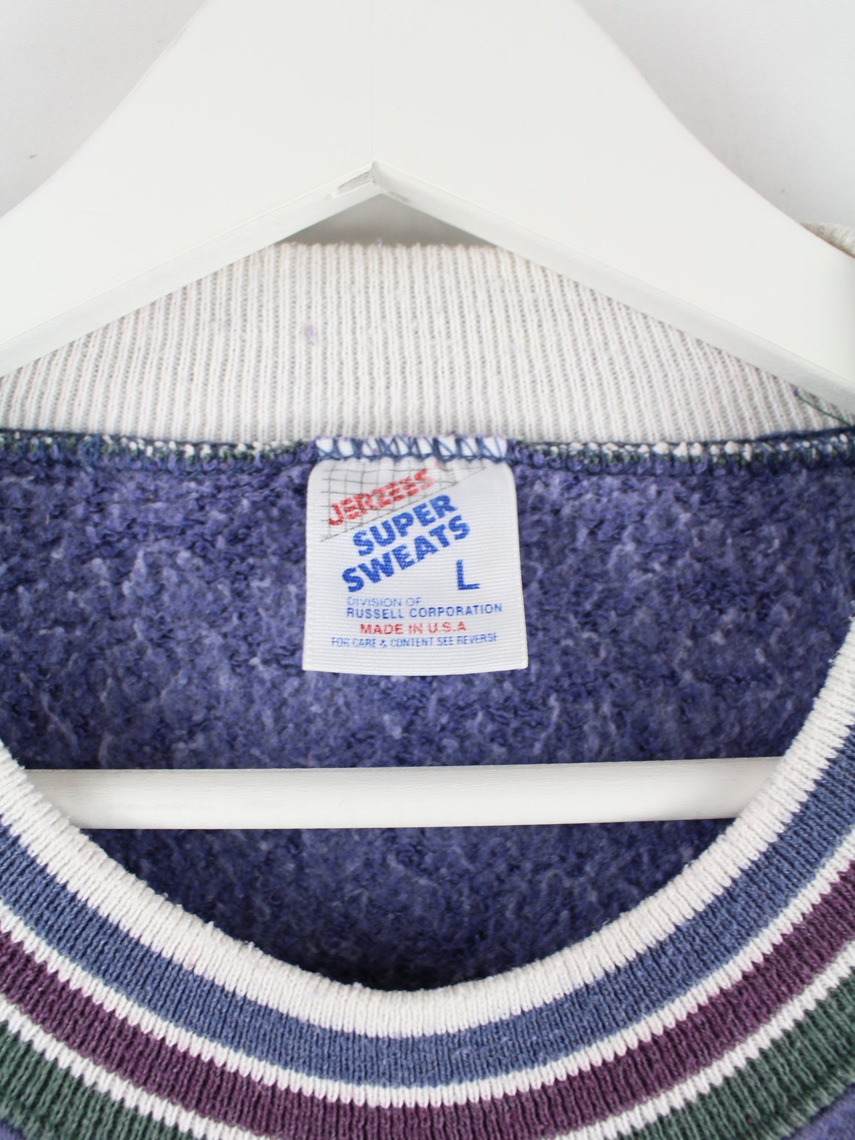 Blauer Sweater mit gesticktem Logo aus dem Hause Jerzees aus den 90'ern in Größe L. Er ist aus einer Baumwollmischung gemacht und in gutem Zustand zu bekommen.