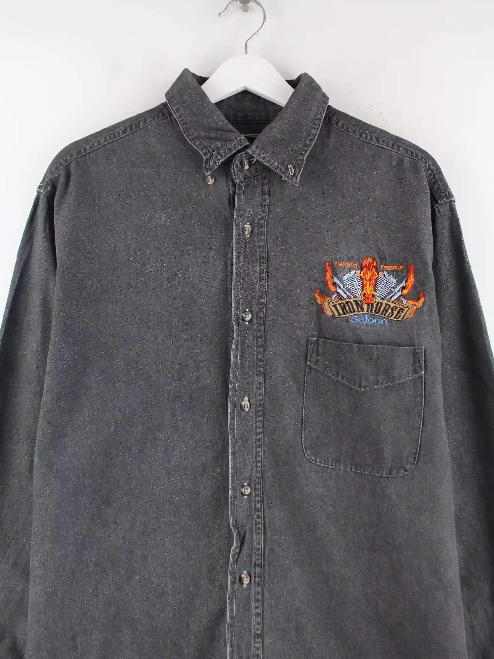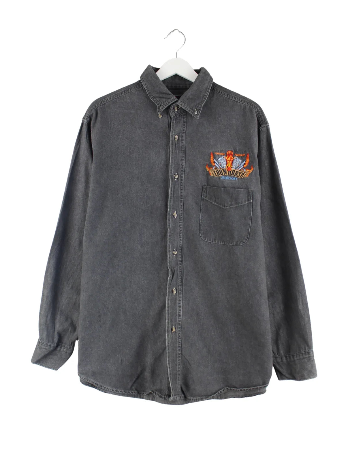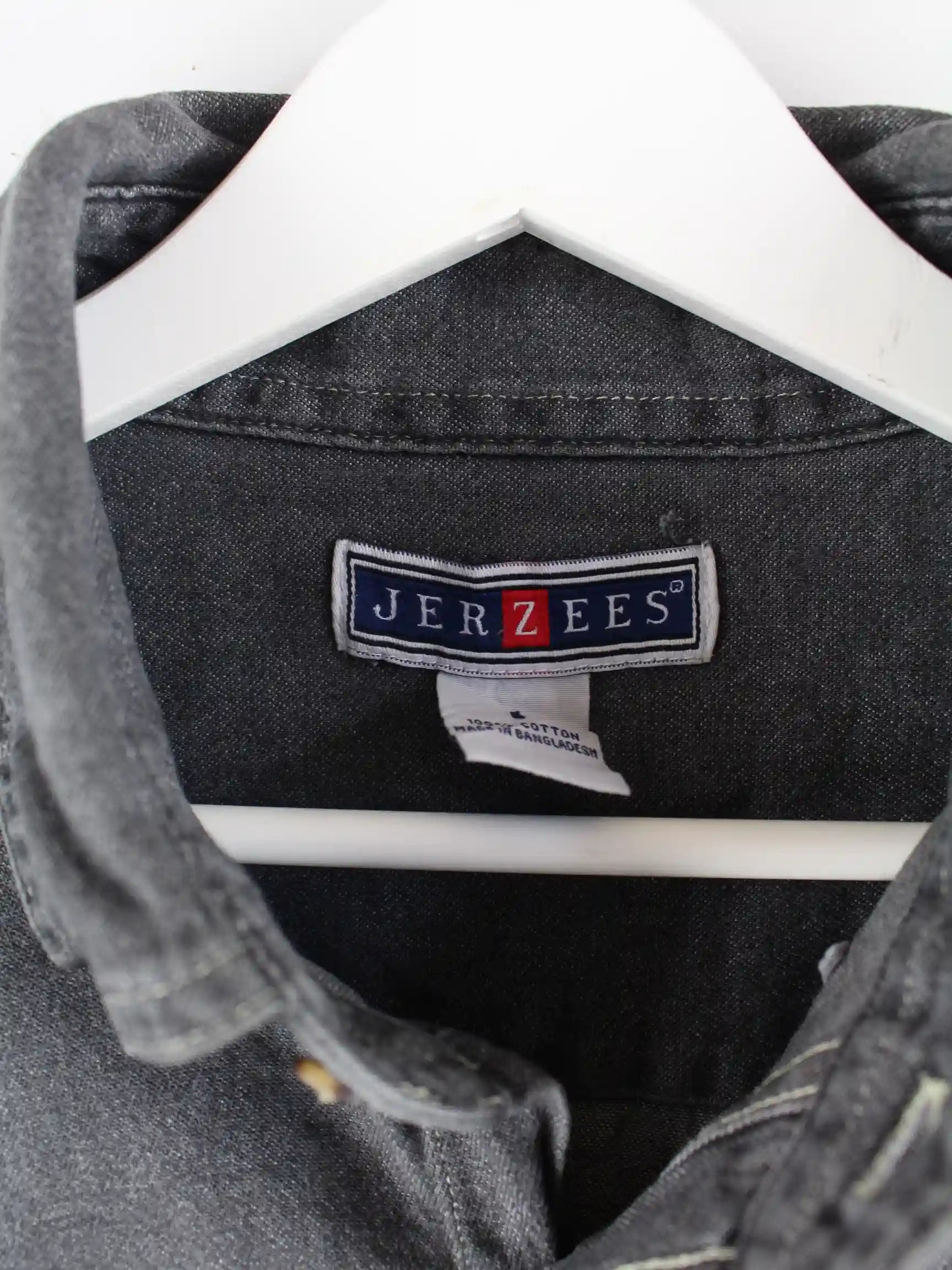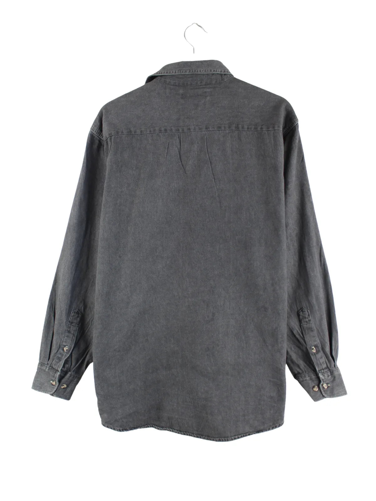 Jerzees 90s Vintage Embroidered Jeans Hemd Grau L