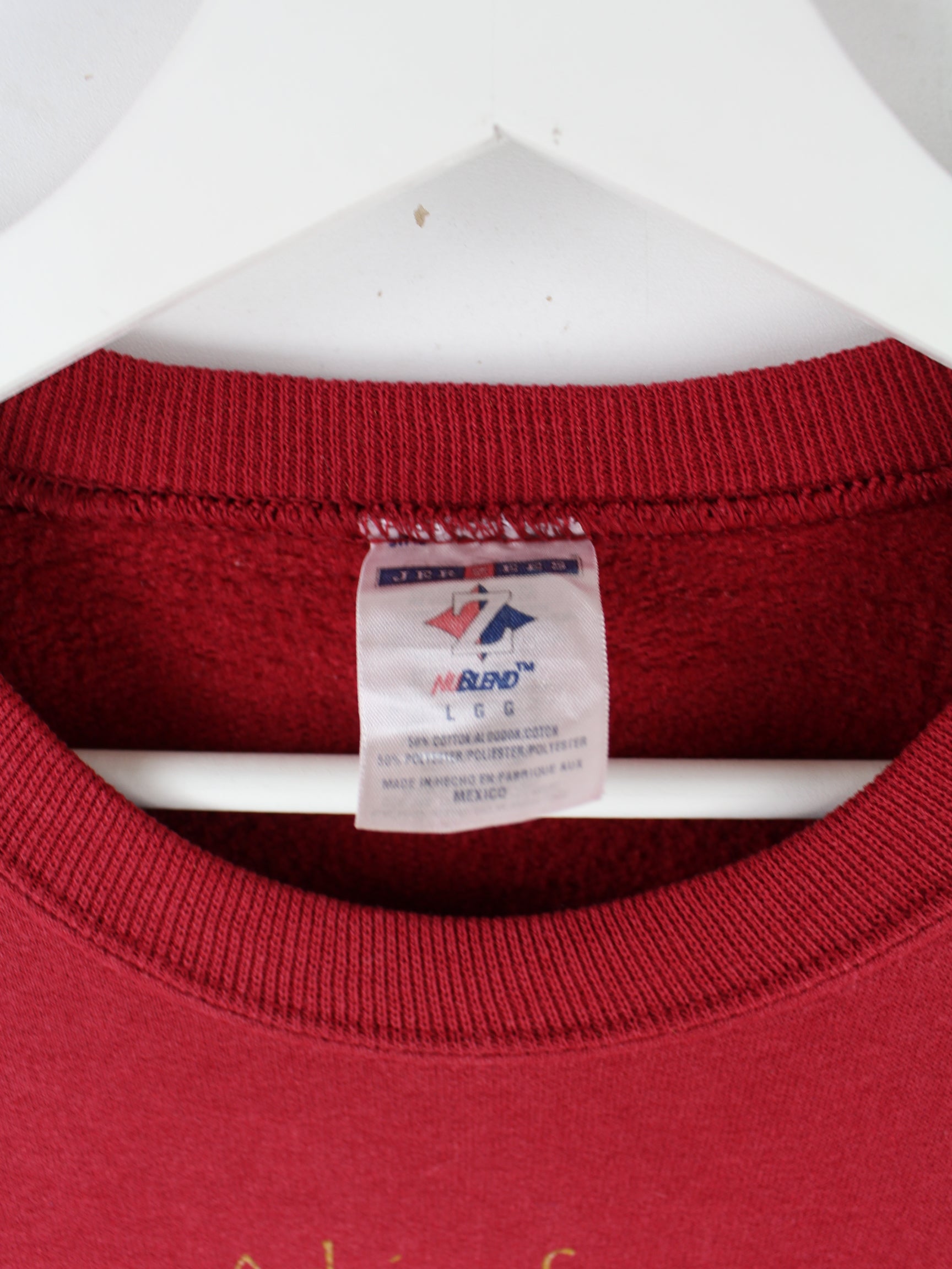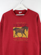 Roter Sweater der Marke Jerzees aus den 90'ern in Größe L. Er ist aus einer Baumwollmischung hergestellt und in gutem Zustand zu bekommen. Mit schickem Horse Print.