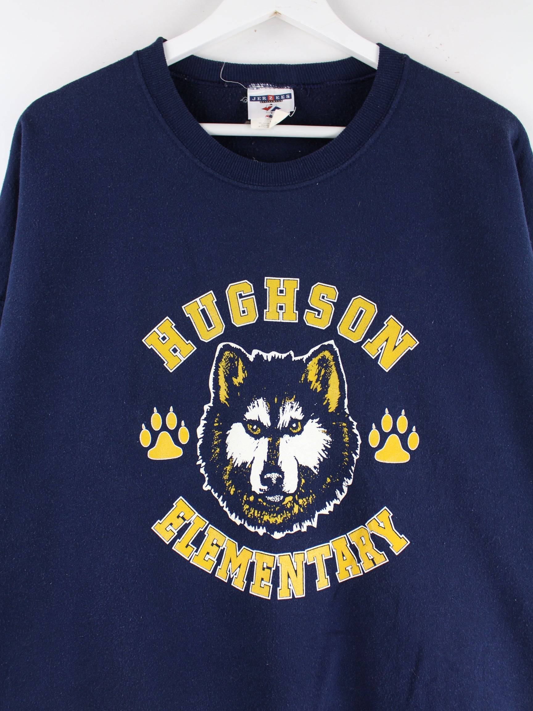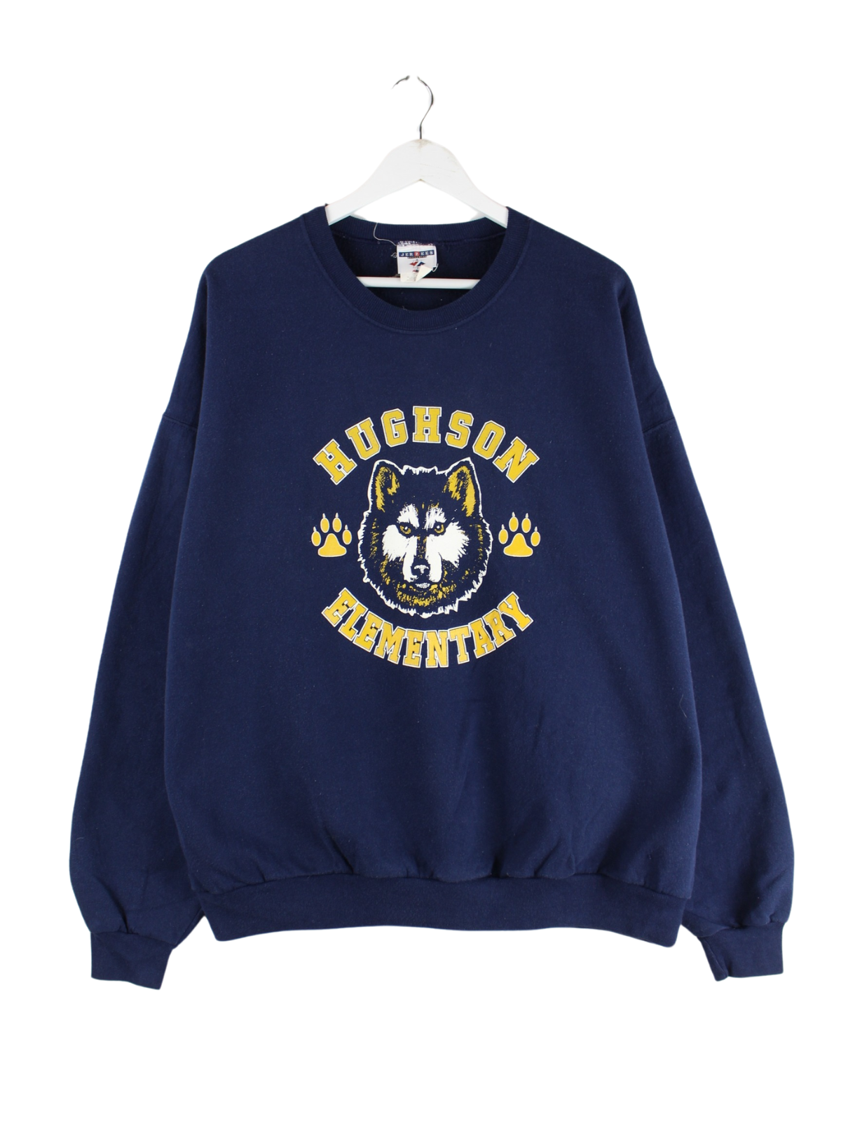 Jerzees 90s Vintage Hughson Wolf Print Sweater Blau XXL