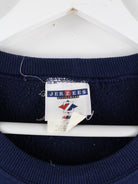 Blauer Sweater vom Label Jerzees aus den 90'ern in Größe XXL. Er ist aus einer Baumwollmischung angefertigt und in sehr gutem Zustand vorrätig. Mit tollem Wolf Print.