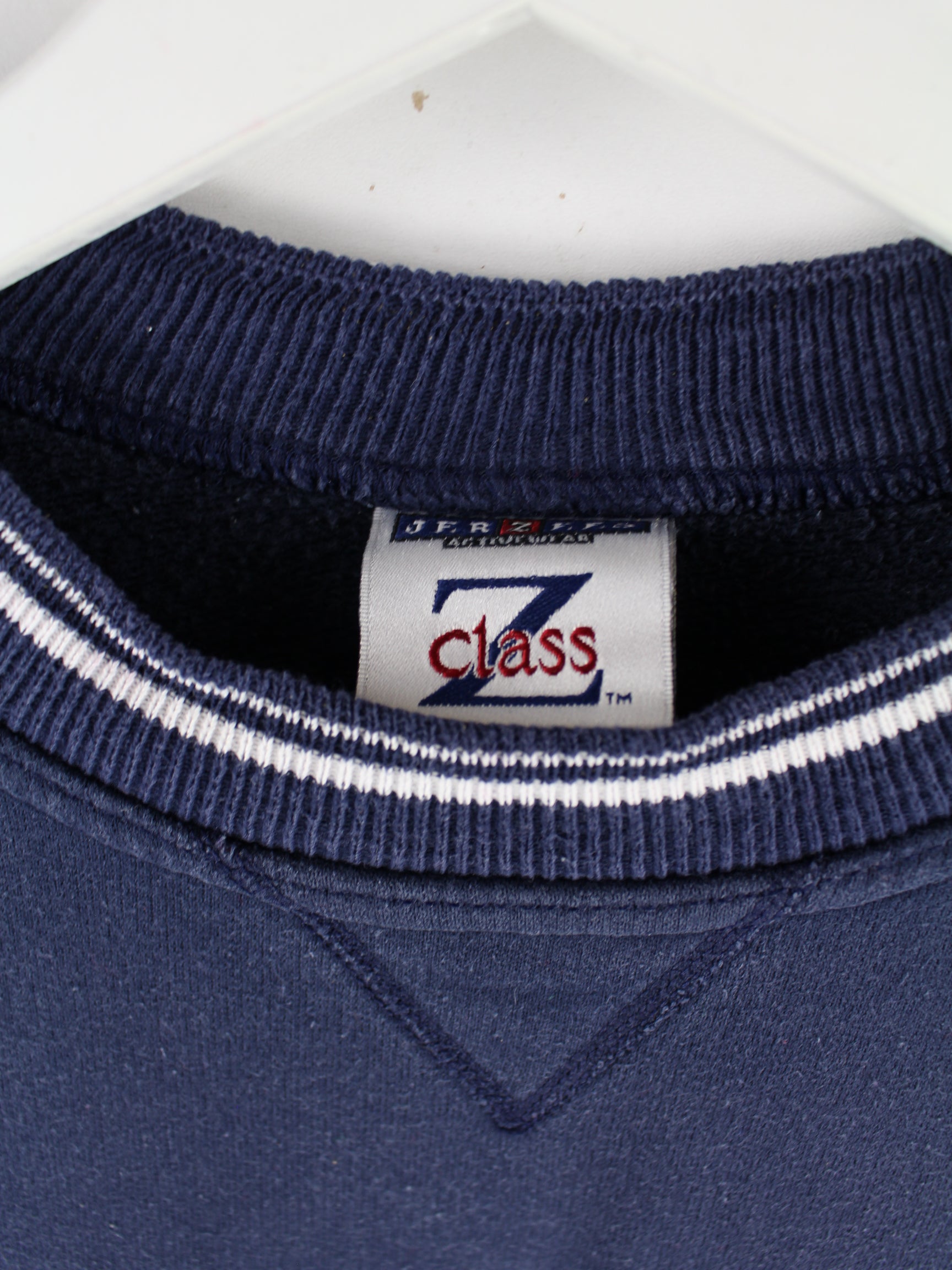 Blauer Sweater mit gestickten Motiven der Marke Jerzees aus den 90'ern in Größe L. Er ist aus Baumwolle und in sehr gutem Zustand im Angebot.
