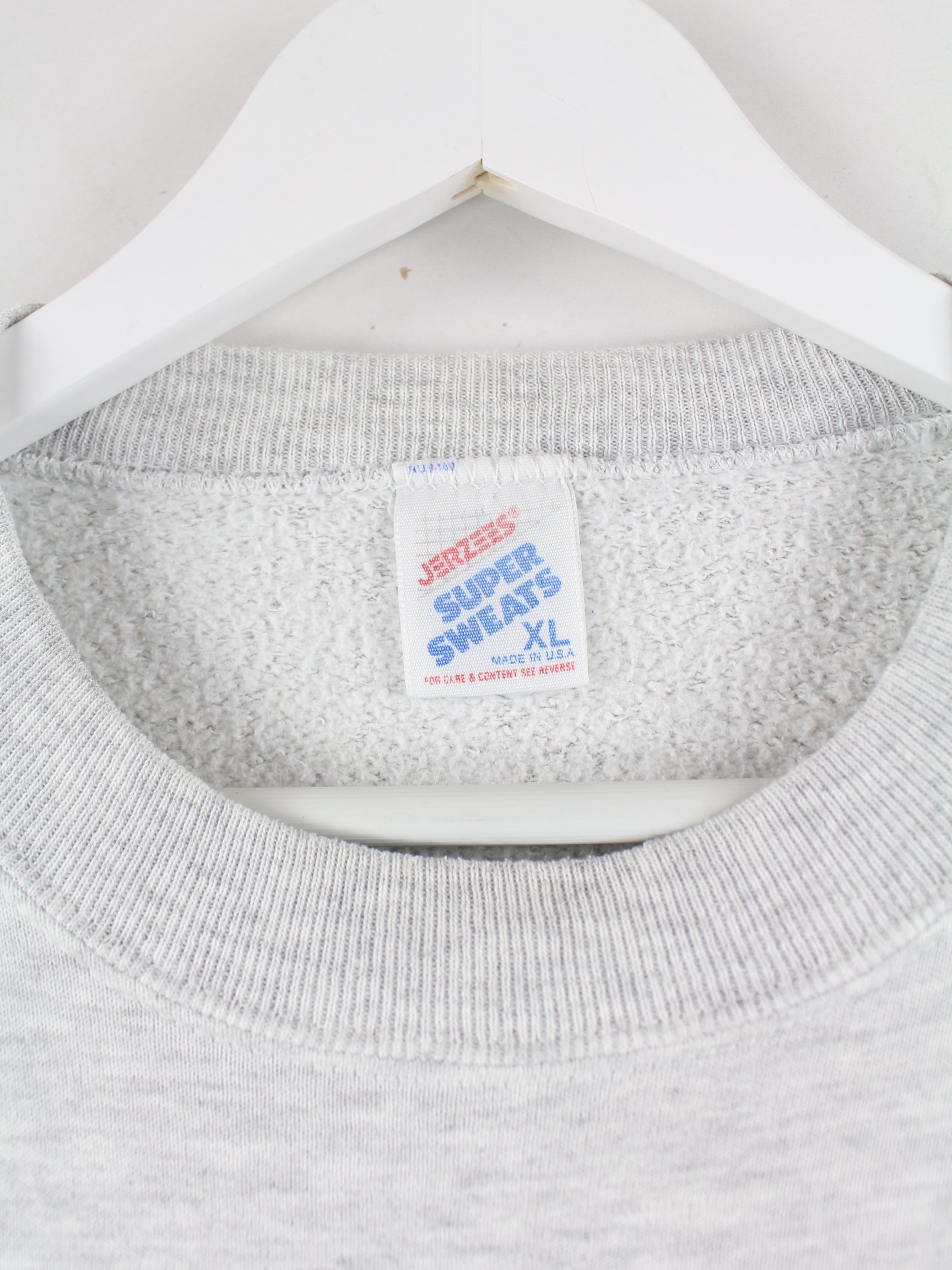 Sweater der Brand Jerzees in Größe XL aus den 90'ern. Er ist aus einer Baumwollmischung hergestellt und in Grau bei uns vorrätig. Mit chiquem Illinois Print.