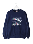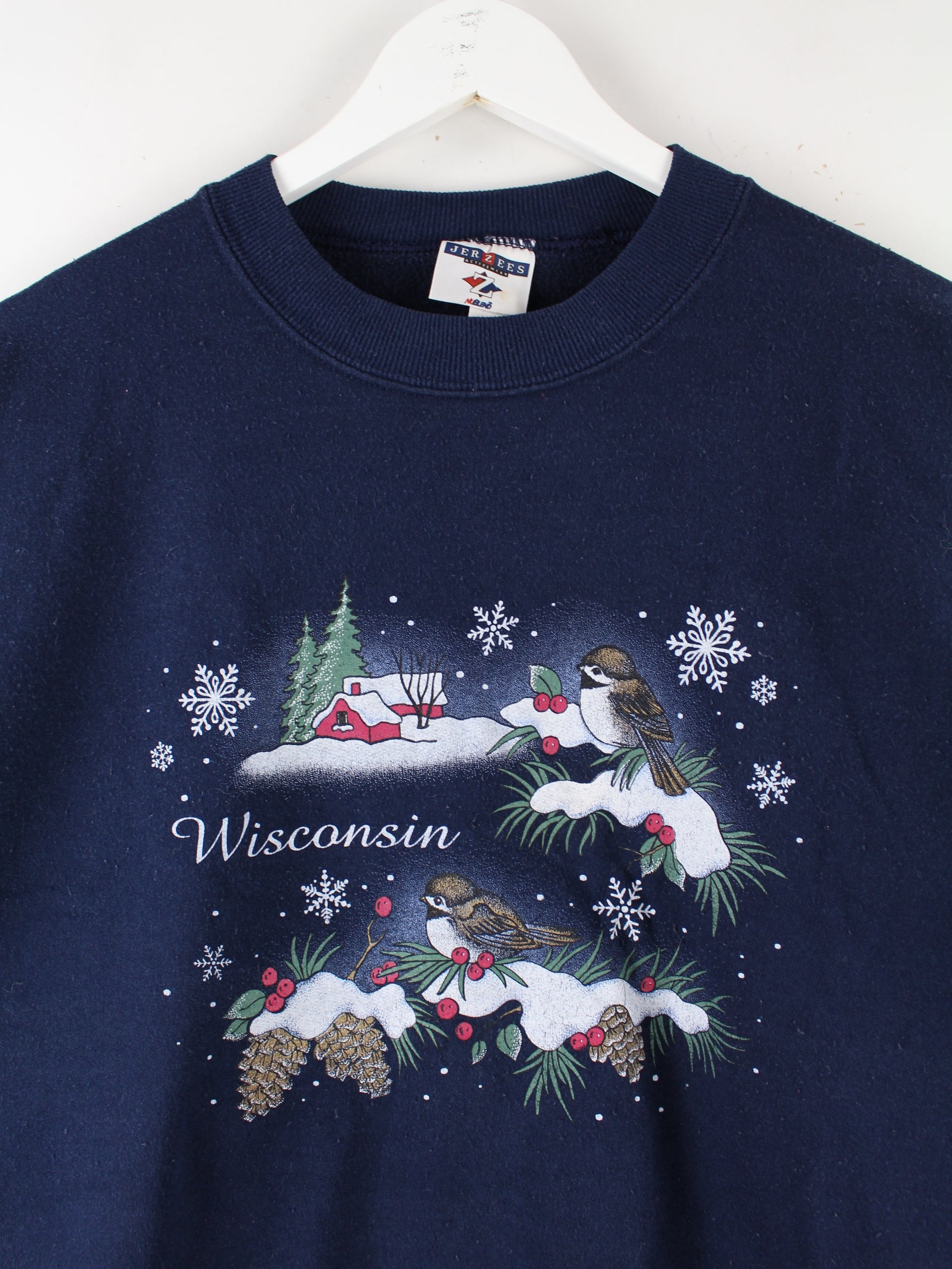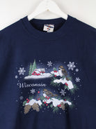 Jerzees 90s Vintage Wisconsin Christmas Print Sweater Blau L
