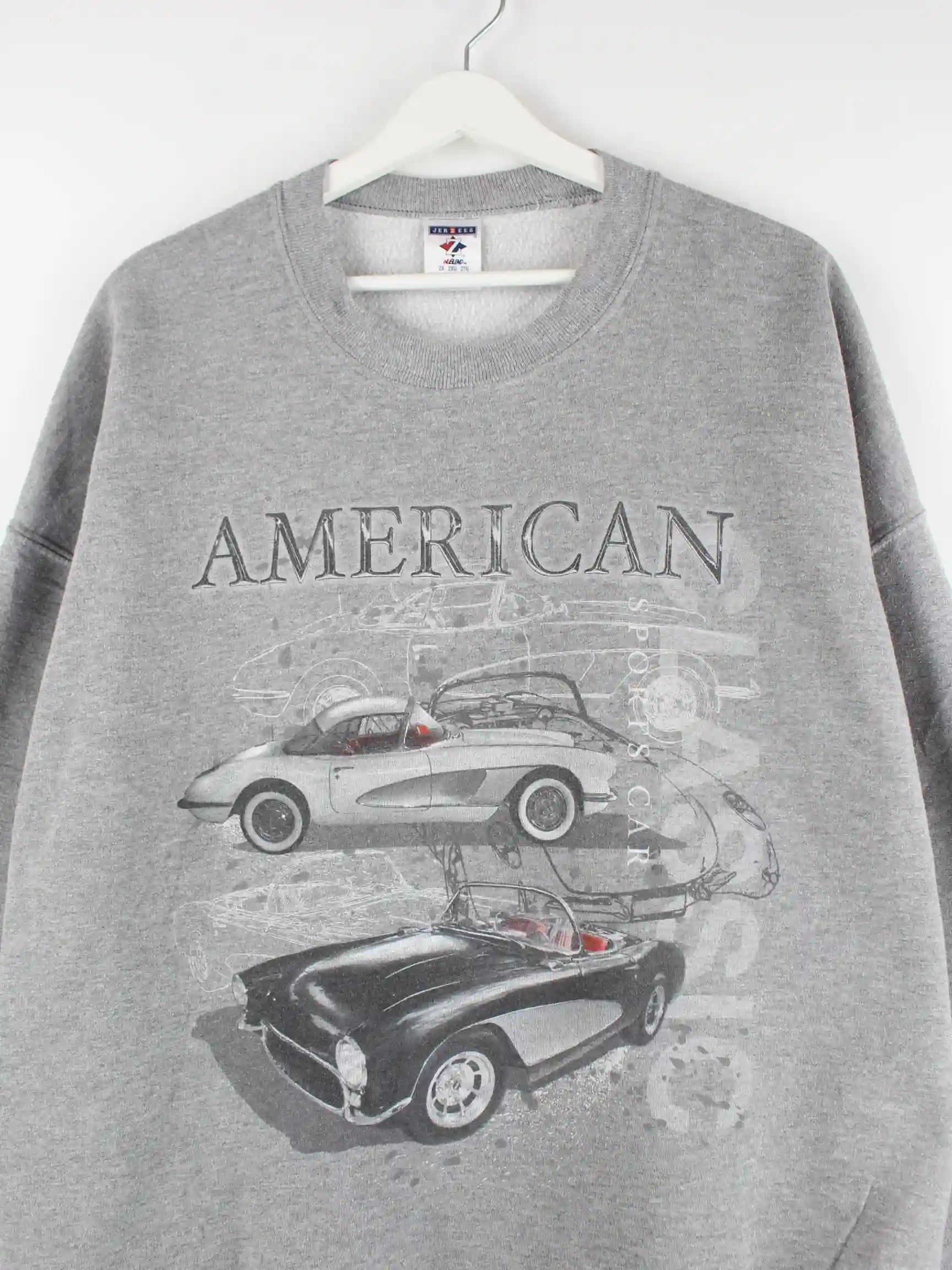Sweater vom Label Jerzees in Größe XXL. Er ist aus einer Baumwollmischung gefertigt und in Grau auf Lager. Mit schickem Timers Print.