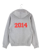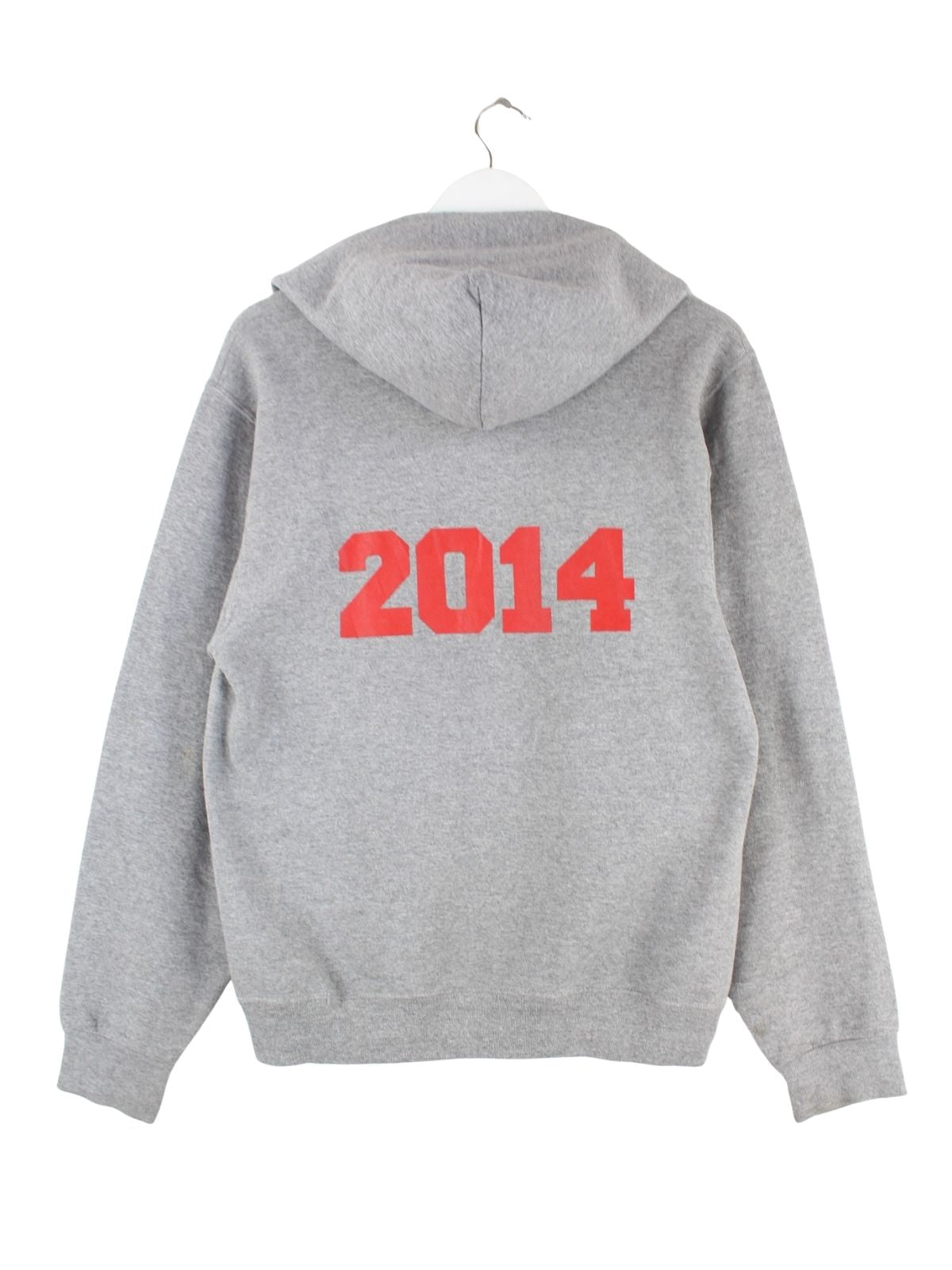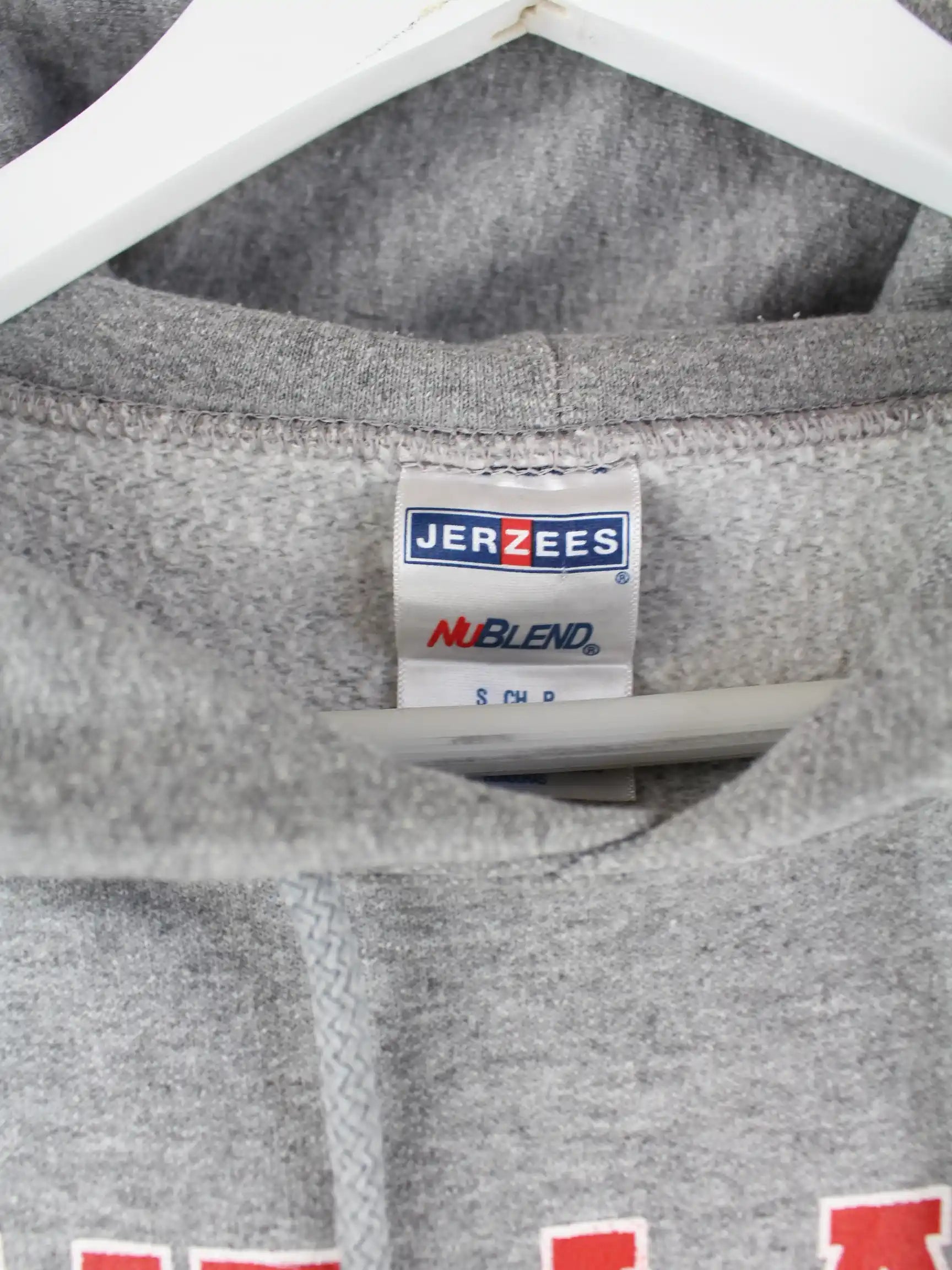 Hoodie aus dem Hause Jerzees in Größe S. Er ist aus einer Baumwollmischung und in Grau bei uns zu bekommen. Mit schickem University Print.