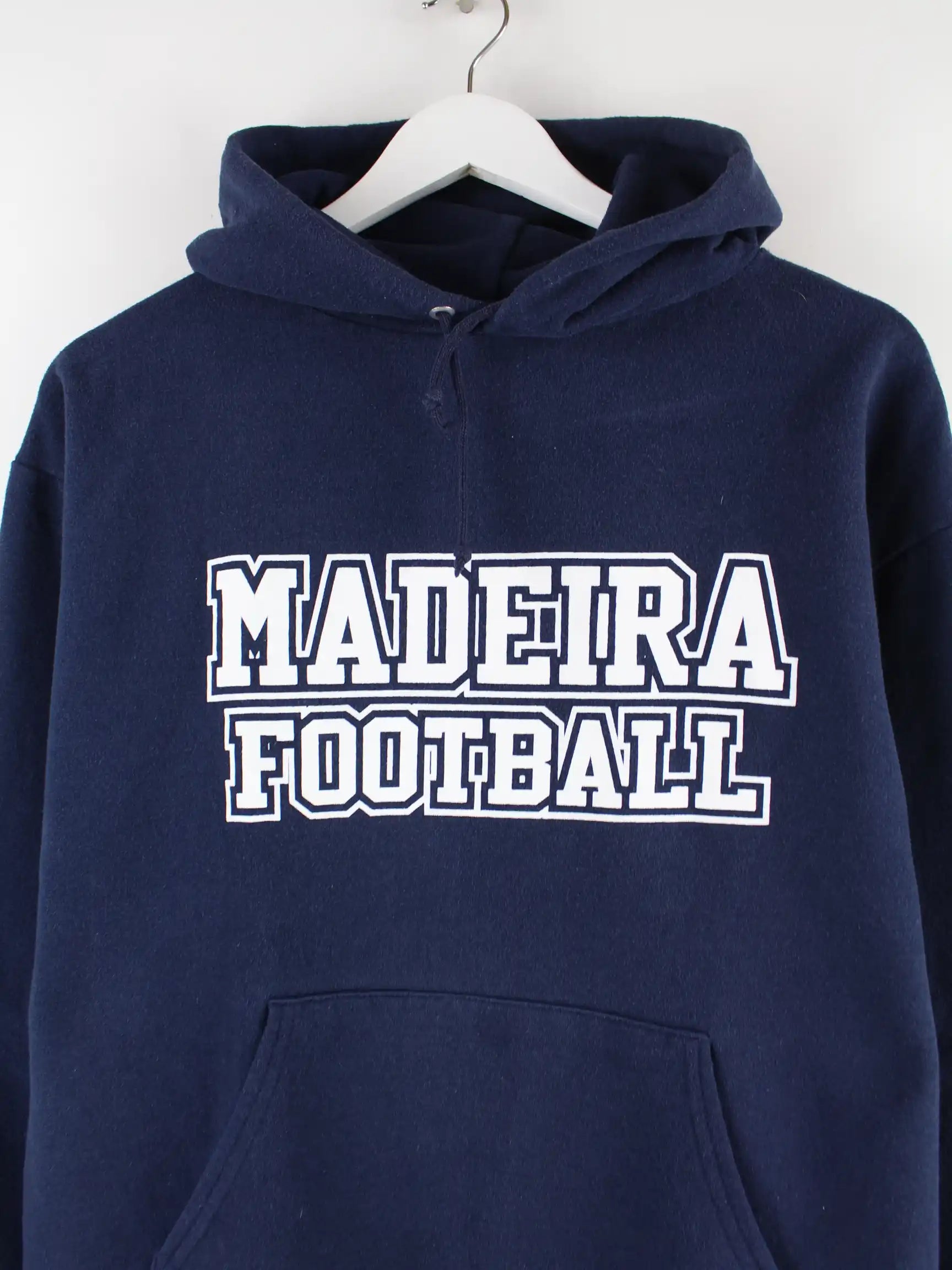 Hoodie von Jerzees in Größe M. Er ist aus einer Baumwollmischung und in Blau im Angebot. Mit schickem Football Print.