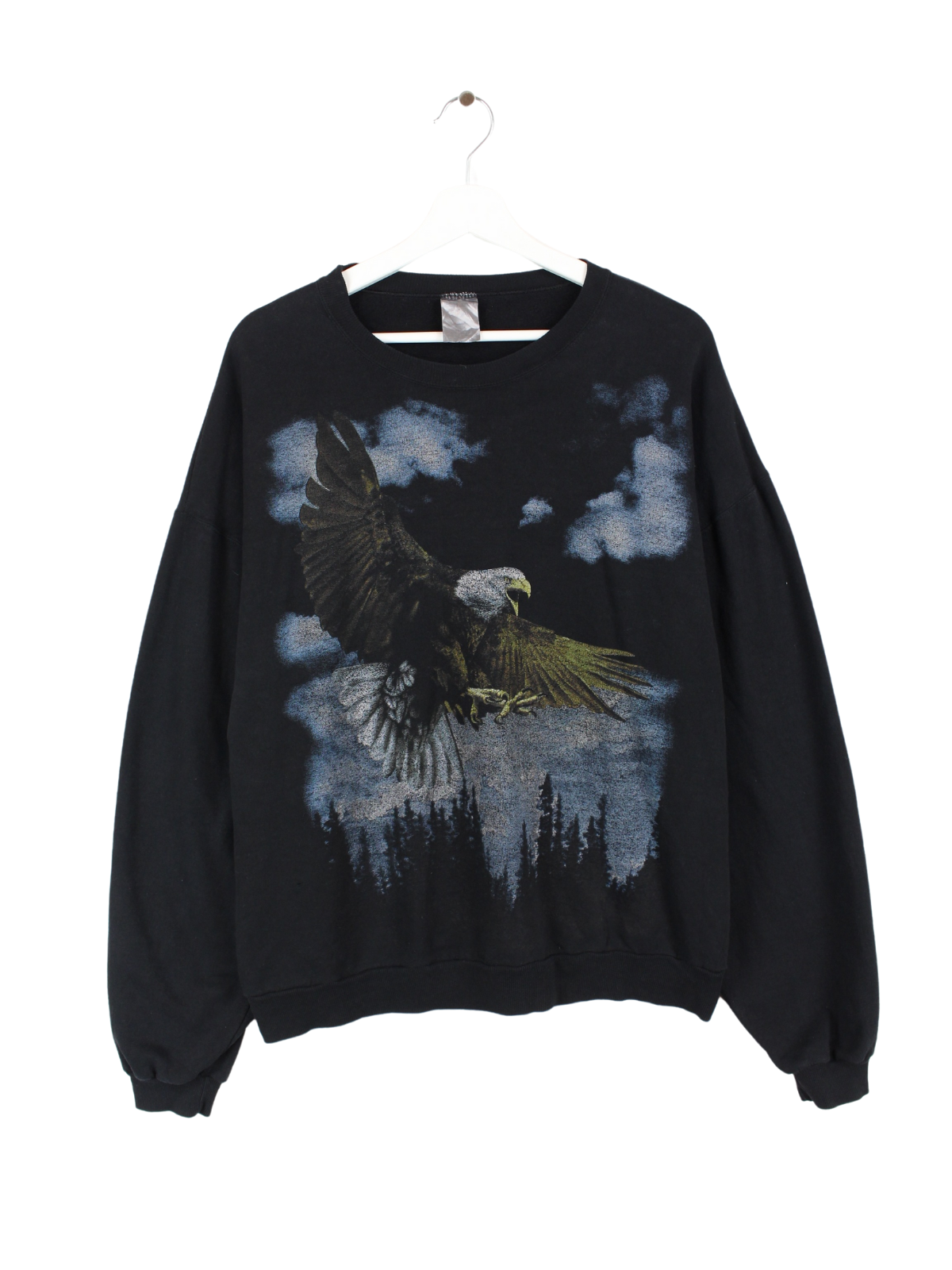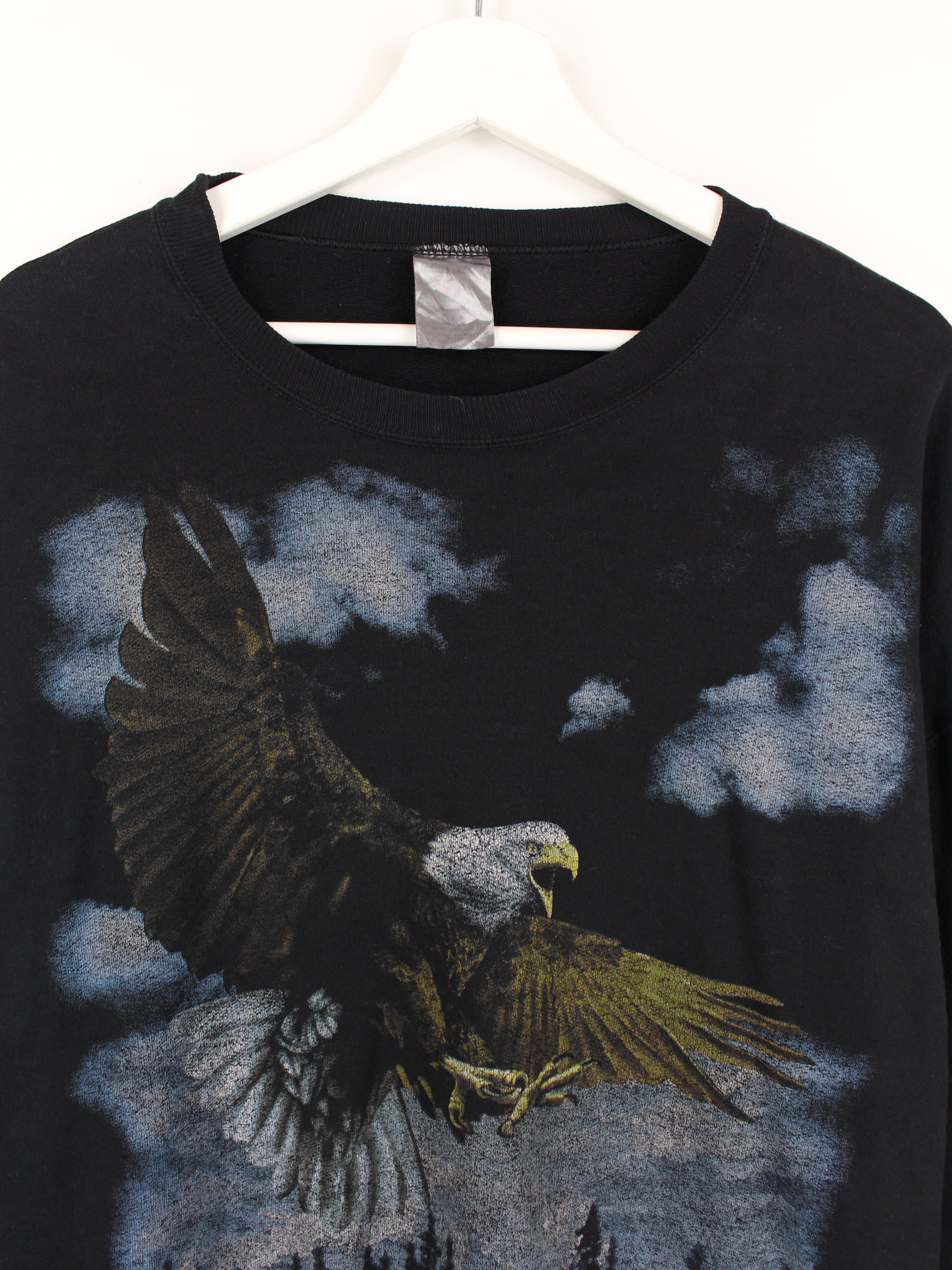 Schwarzer Jerzees Sweater mit Adler Aufdruck.