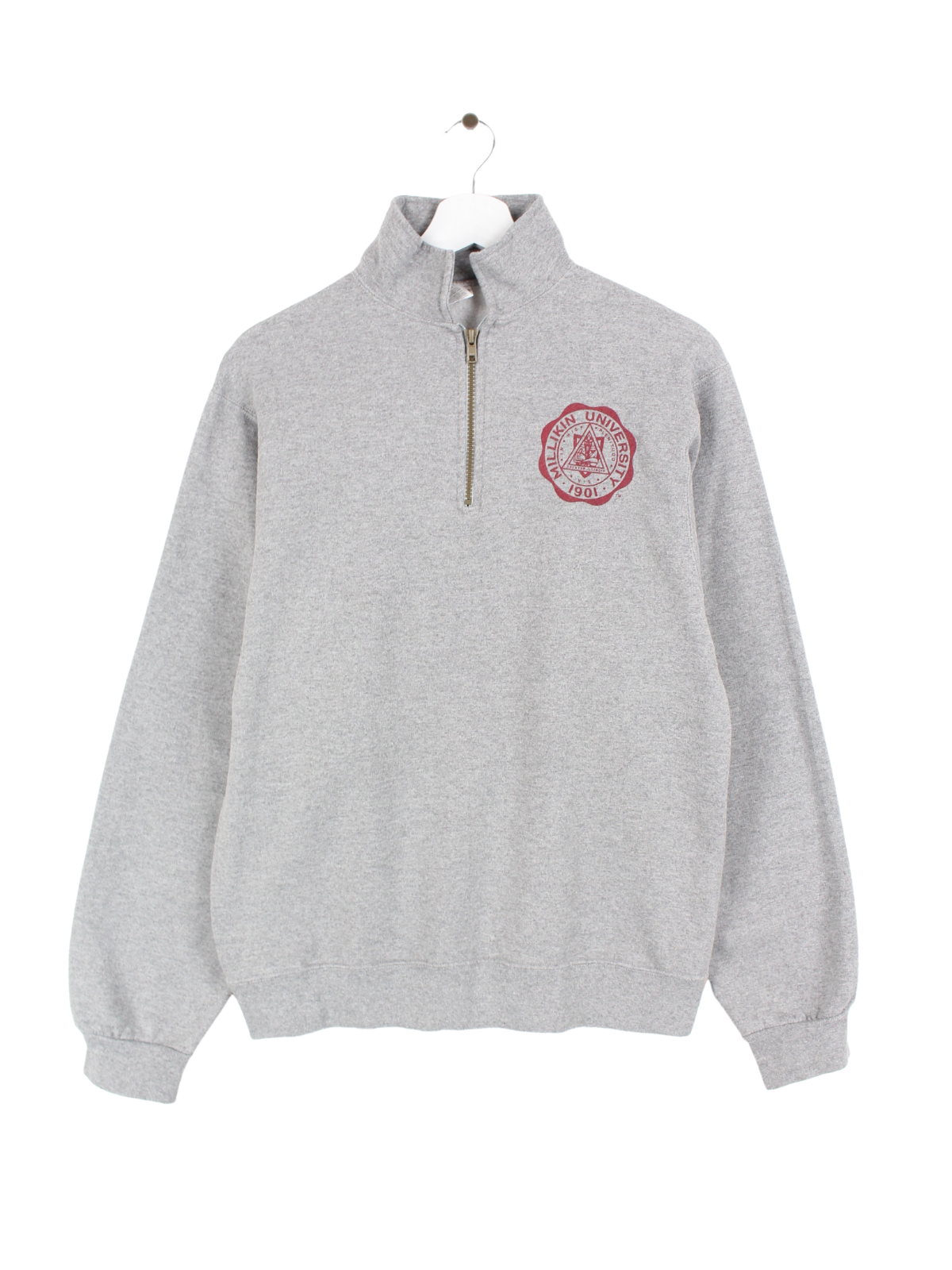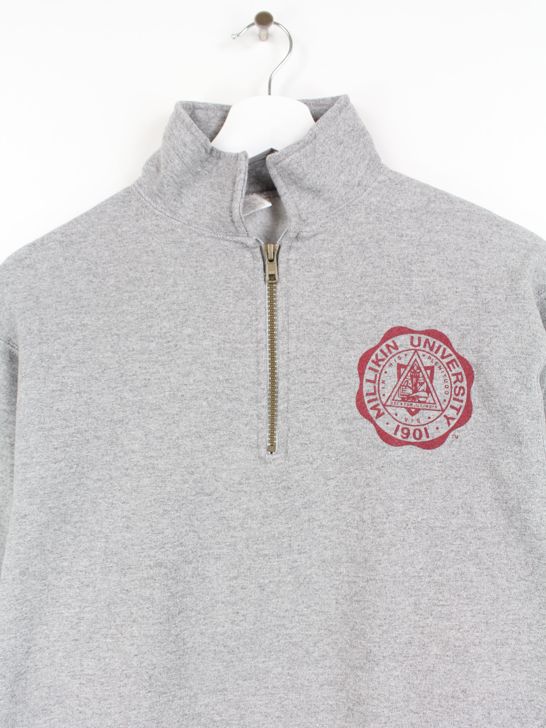 Grauer Jerzees Zip Sweater der Millikin University.