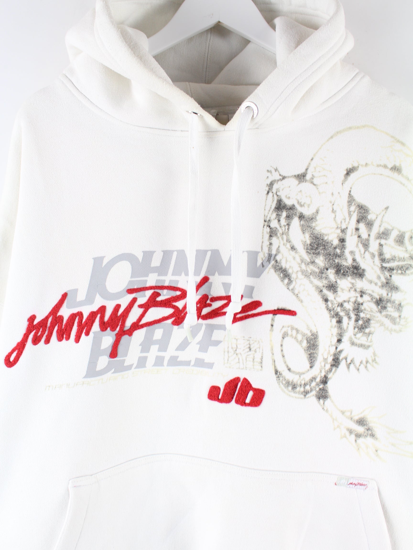 Johnny Blaze 00s Embroidered Heavy Overzised Hoodie Weiß XXL