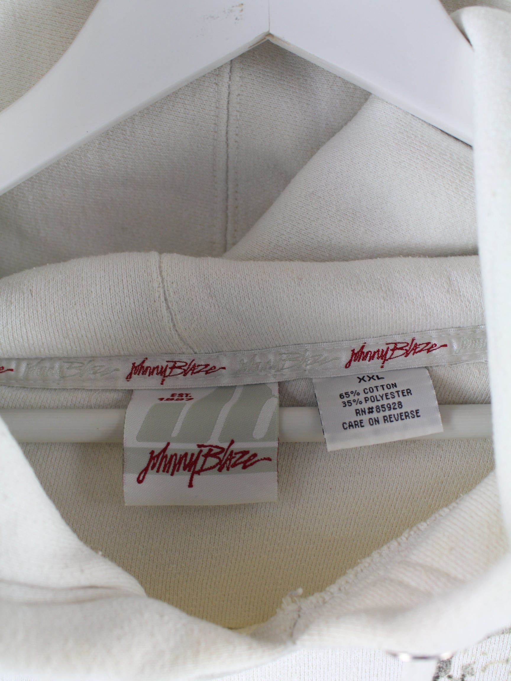 Hoodie aus dem Hause Johnny Blaze mit Stickereien in Größe XXL. Er ist aus einer Baumwollmischung angefertigt und in Weiß bei uns vorrätig.