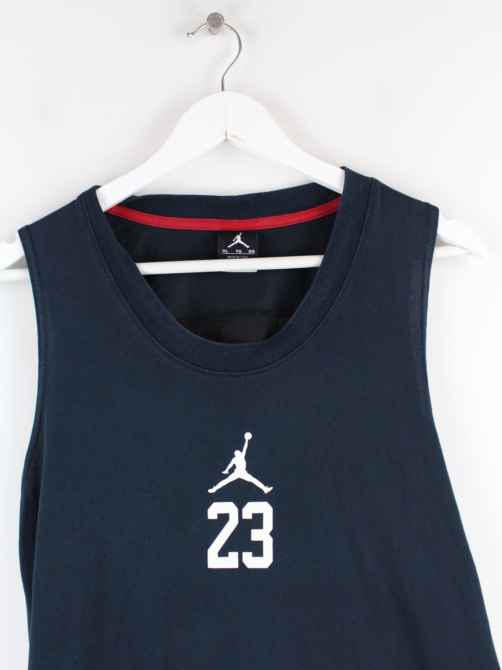 Tank Top aus dem Hause Jordan in Größe XL. Er ist aus einer Baumwollmischung angefertigt und in Schwarz bei uns zu bekommen. Mit tollem #23 Print.