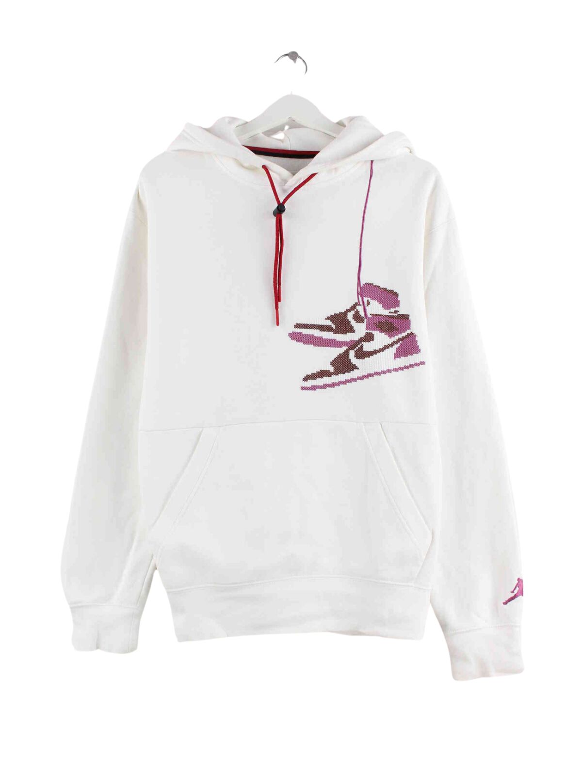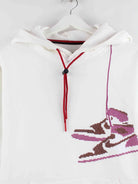 Beigefarbener Hoodie mit Stickereien der Marke Jordan in Größe S. Er ist aus einer Baumwollmischung gefertigt und in gutem Zustand bei uns zu bekommen.