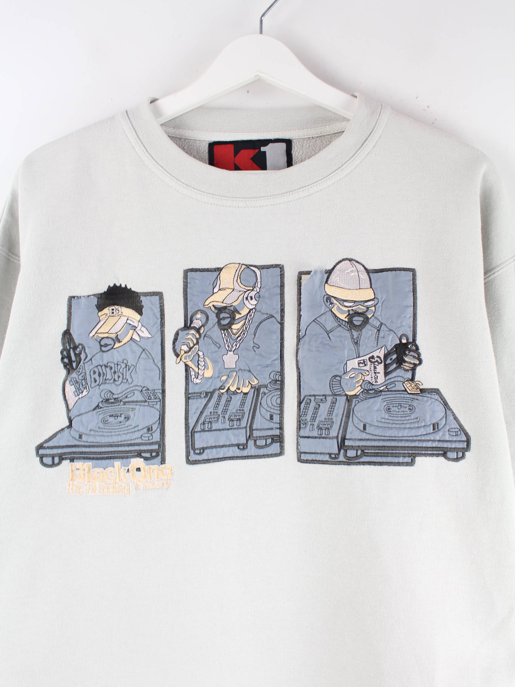 K1 90s Vintage HipHop Embroidered Sweater Grau M