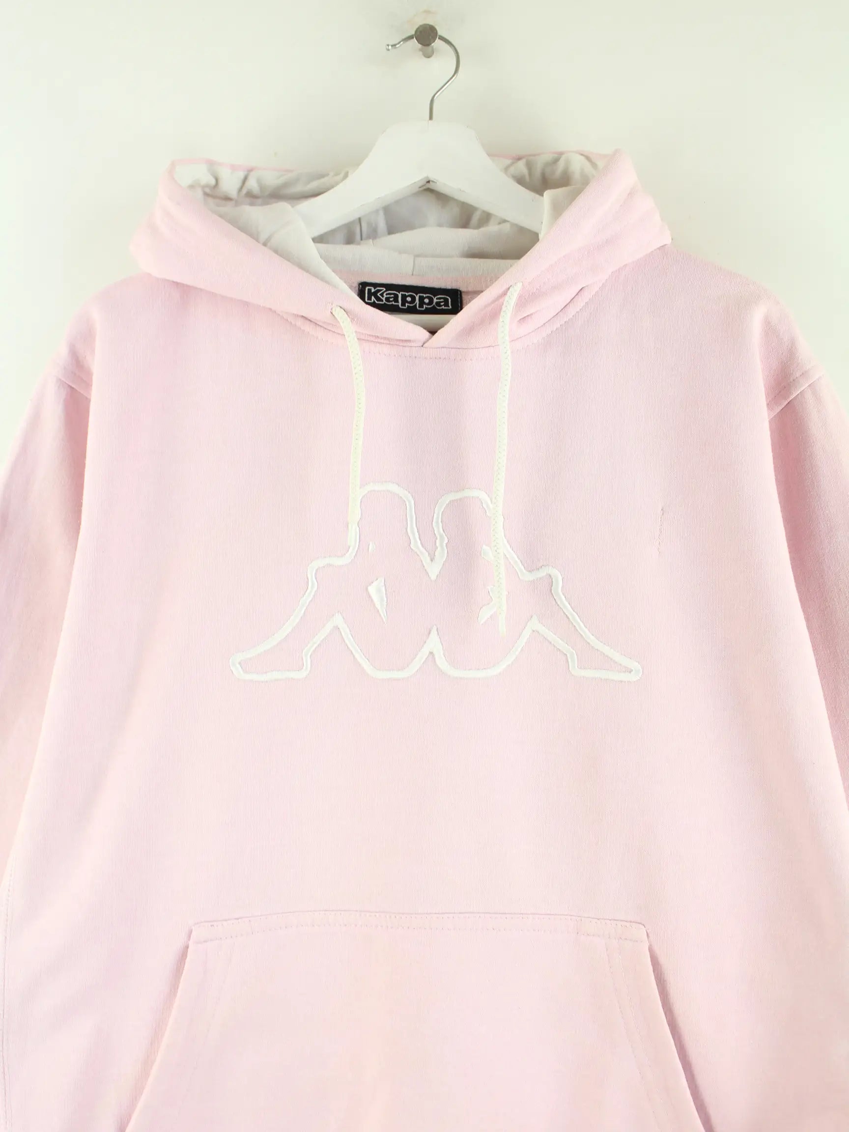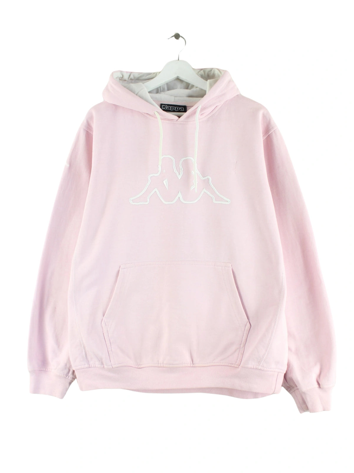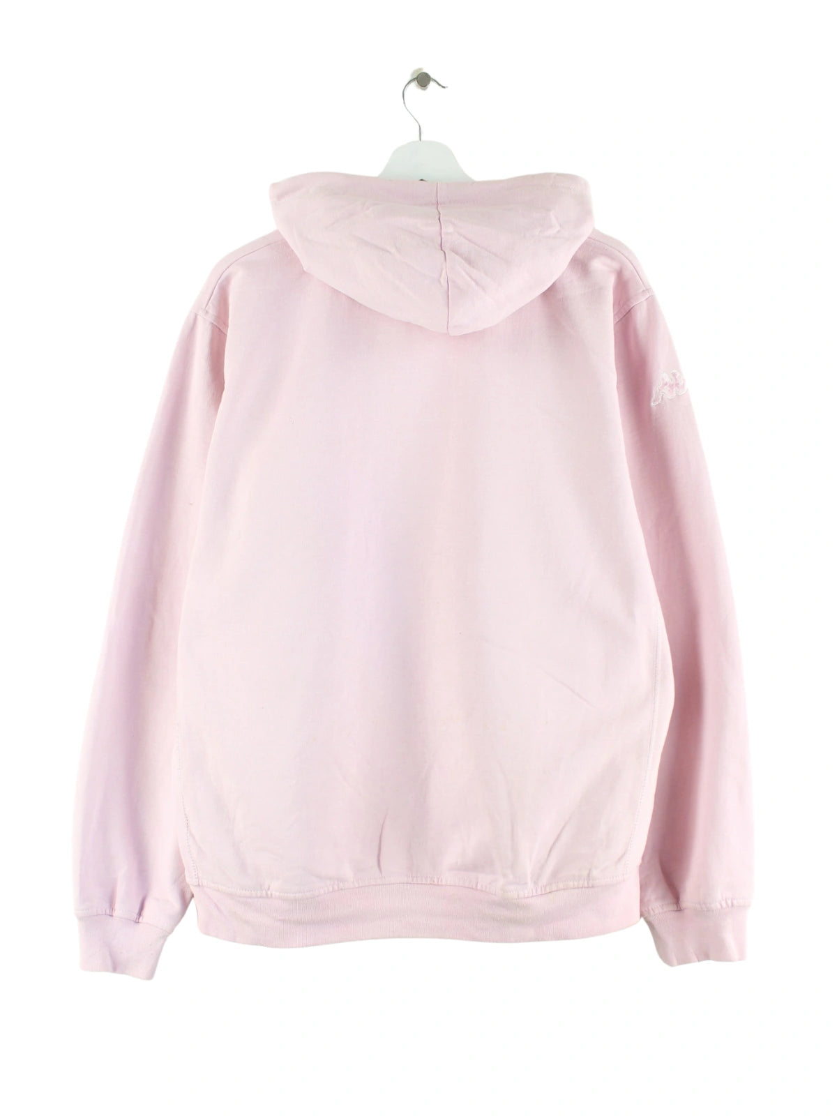 Rosafarbener Hoodie mit gestickten Motiven des Labels Kappa in Größe L. Er ist aus einer Baumwollmischung gefertigt. Den Zustand würden wir als 'In Ordnung' bezeichnen (vergl. Bilder).